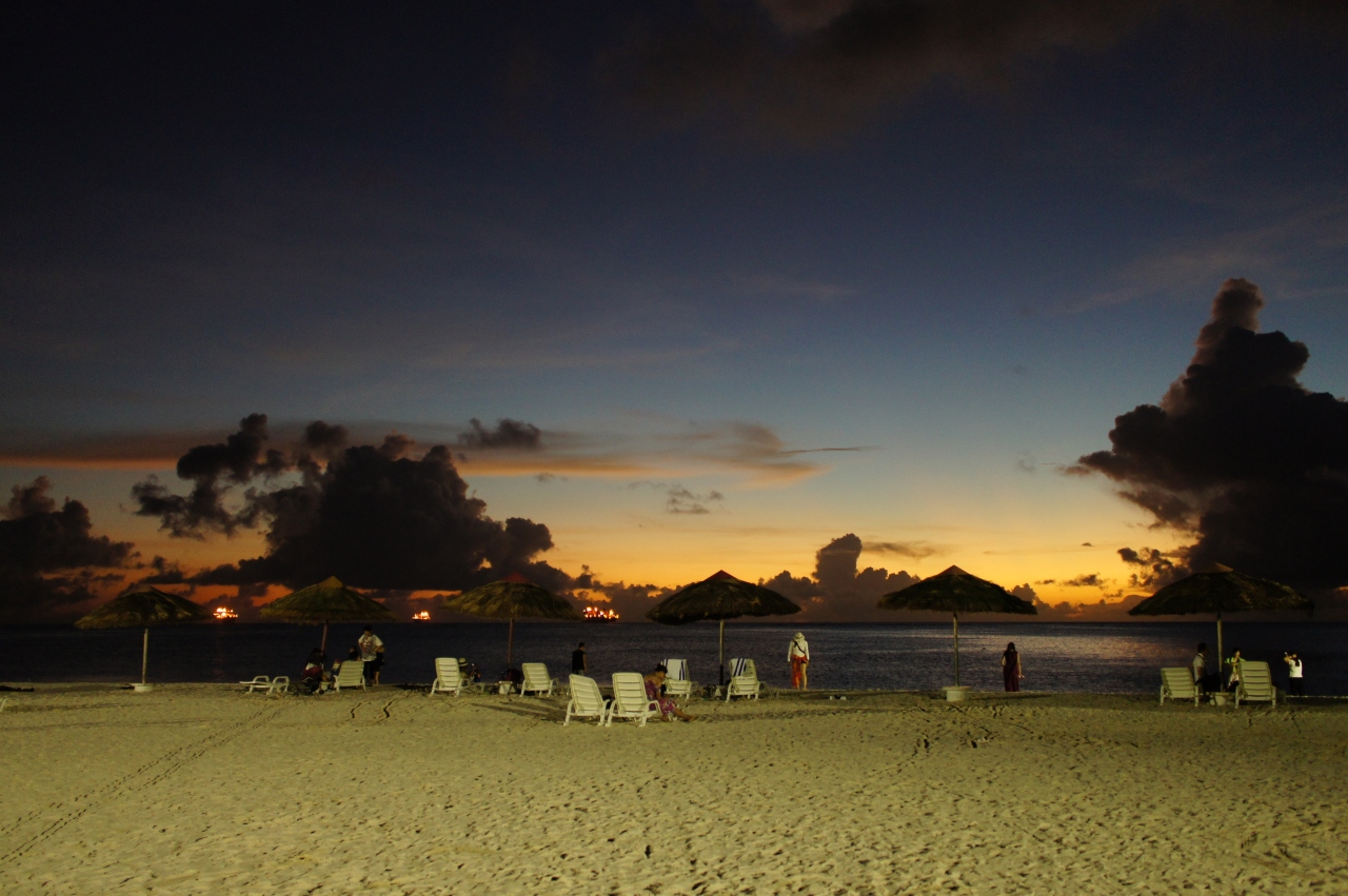 プライベートビーチはよく清掃されており、西向きのため夕焼けが感動的!