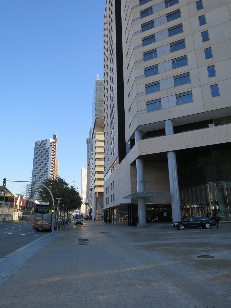 ホテルは大きな道路側で空港へもスムースでした。またガウディが造ったモデルニスモ建築巡りや地中海を満喫するシーサイドのバルセロネータ海岸への交通もよいのではないでしょうか。