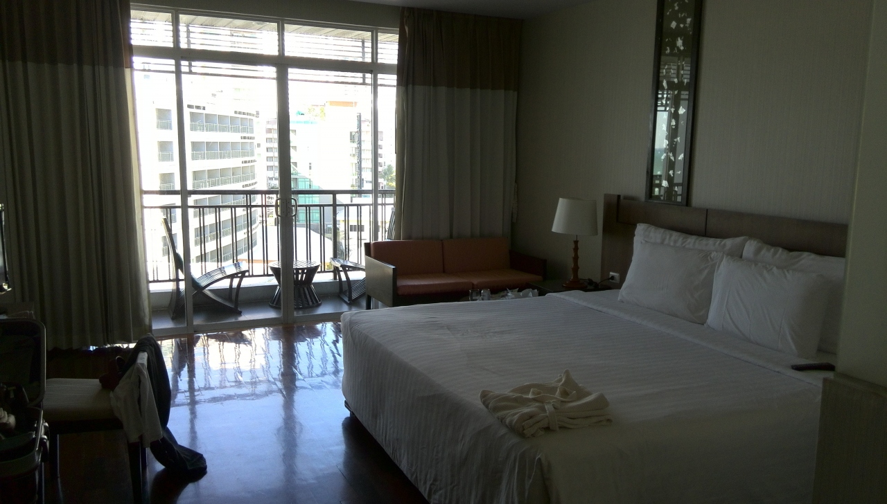 今回もこのホテルを利用しました。ここ最近のパタヤでの定宿になっています。今回は一人での利用で、最も安いサイトから朝食付きで2泊しました。毎回部屋は全てヒルトンが見える南パタヤ側で素晴らしい景色が望める部屋でしたが、今回初めて反対側の部屋をアサインされました。結論から言うとソイ6の建物の屋根や建設中の建物などが前面に目立ち、少しビーチは見えるものの景色を眺めてのんびりというような楽しみは期待できませんで、かなりがっかりでした。次回はチェックインの際、南側をリクエストしてみようと思います。しかし部屋は広くて綺麗で朝食もまま充実しておりますので、次回は是非南側の部屋を期待したいと思います。空港へは夕方のベルトラベルサービスのバスを利用しましたが、チェックアウト後スーツケースを預かってもらいスムーズに移動することができました。