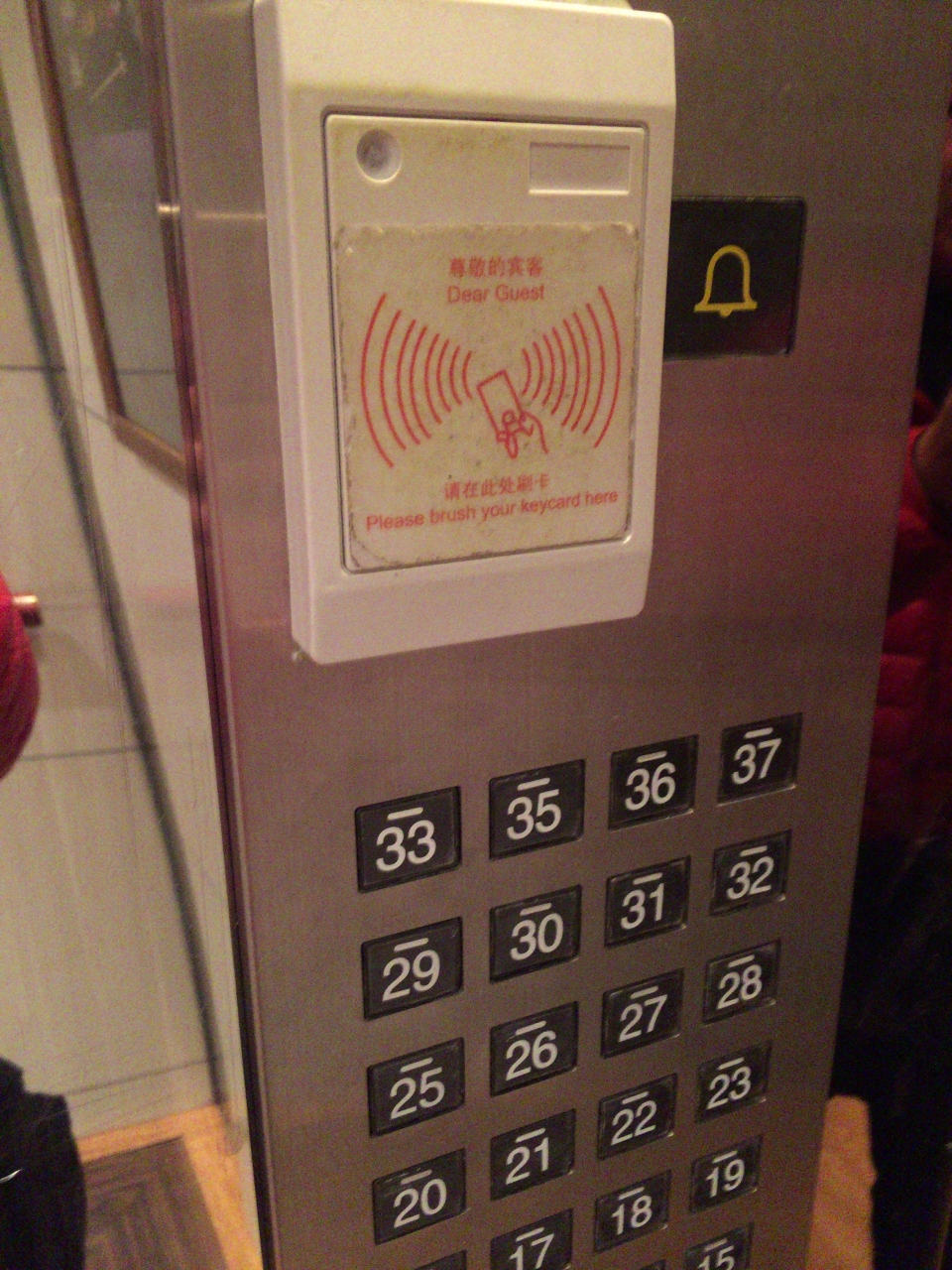 エレベーターはカードキーをかざすと目的階へのボタンが押せるタイプ。