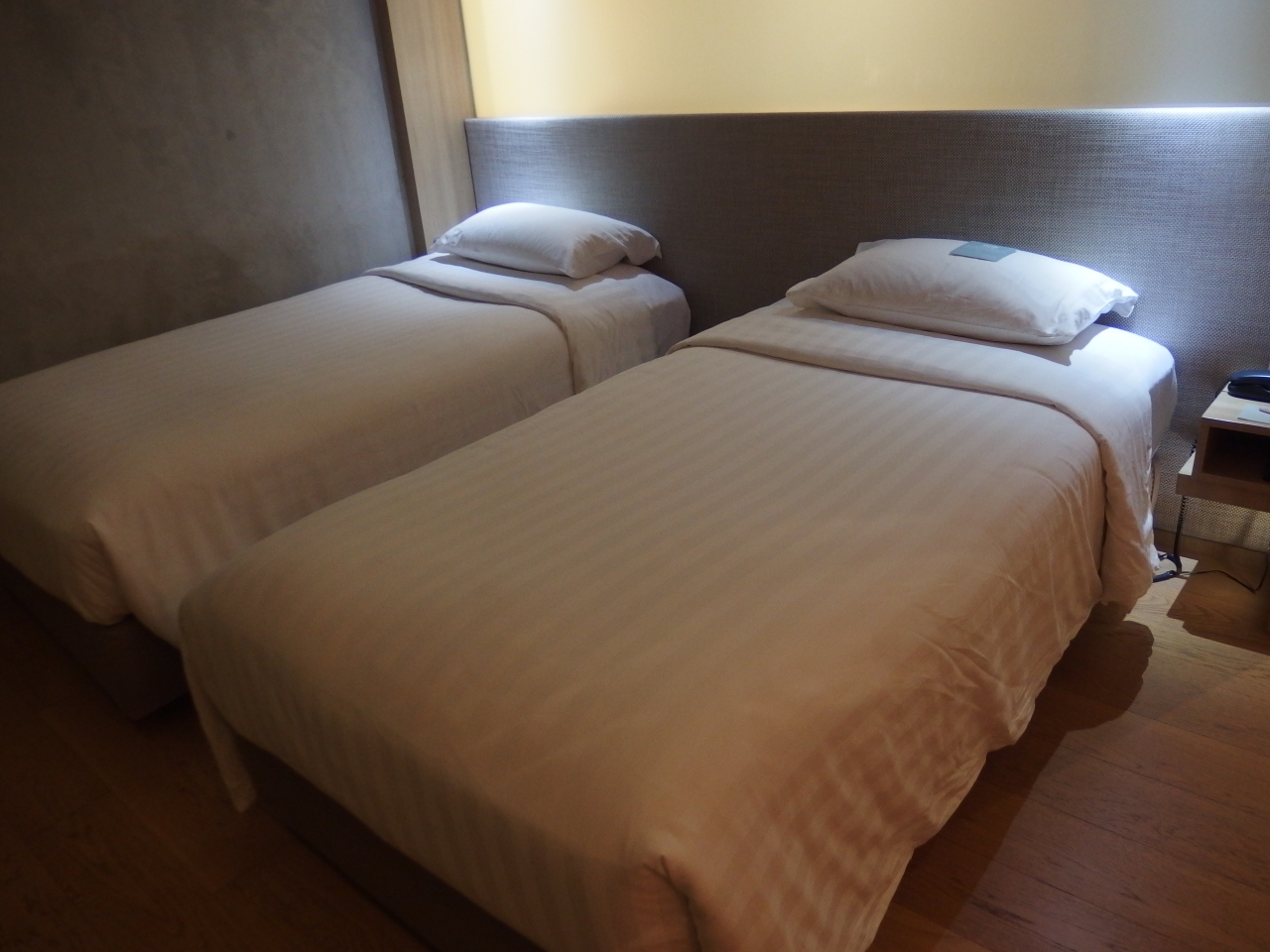 客室は綺麗ですし、広さも十分です。ただ備付けのスリッパは汚くて使用できませんでしたので、持参のスリッパを使用。若い人や荷物が少ない旅行者には良いホテルですが、年寄りや重い荷物の旅行者には不向きです。ホテルの正面玄関に階段がありホテルのスタッフが居れば手伝ってくれますが、居なければ自分で揚げたり降ろしたりする必要があります。またエレベーターホールまで階段を登ったり降りたりしなければ到達出来ません。足の不自由な人には大変です。またBTS駅からは近くでもなく、遠くでもないので、