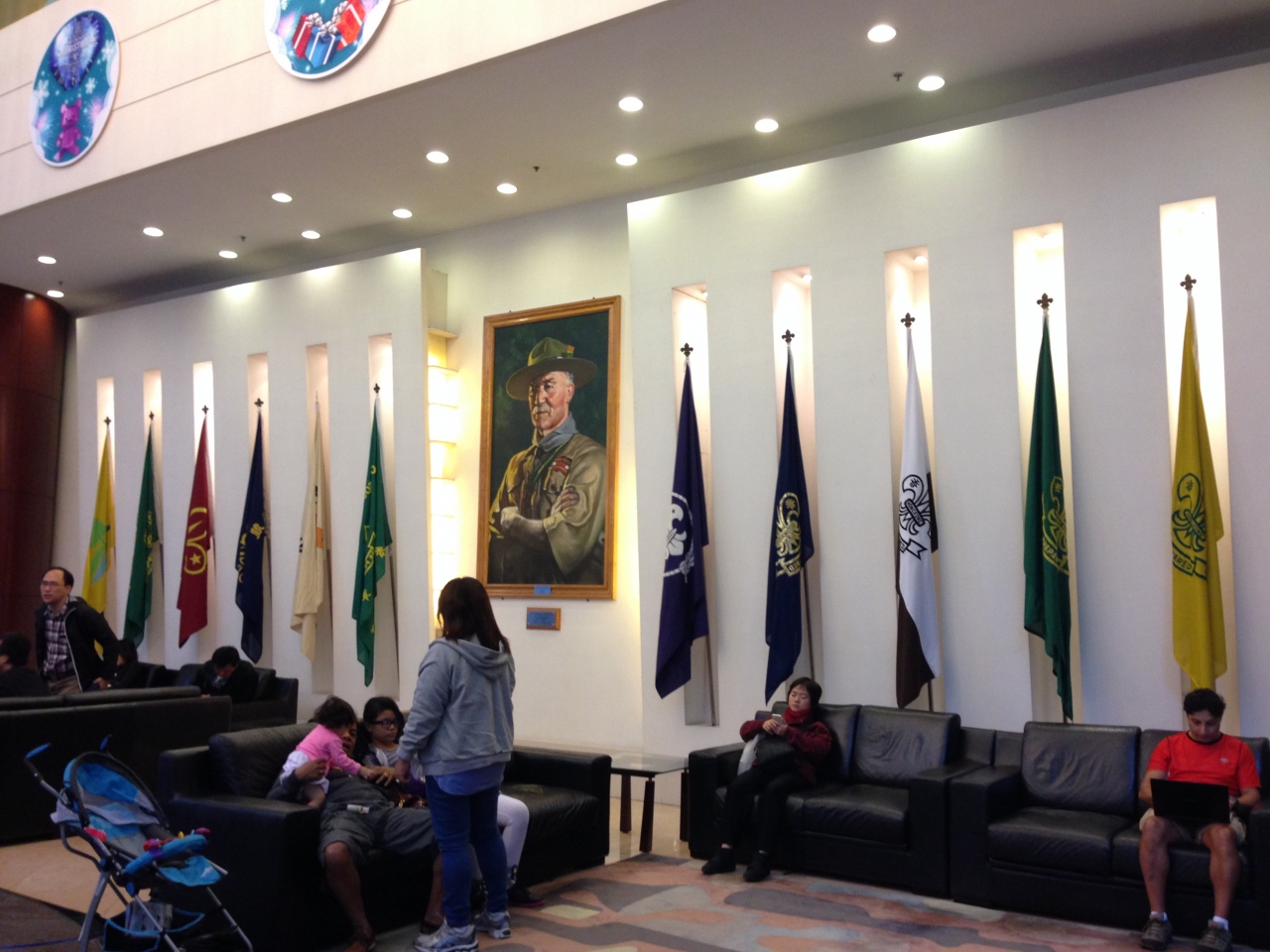 ホテルの途中階には香港ボーイスカウトの本部やショップがあり広いロビーには肖像画があります。
