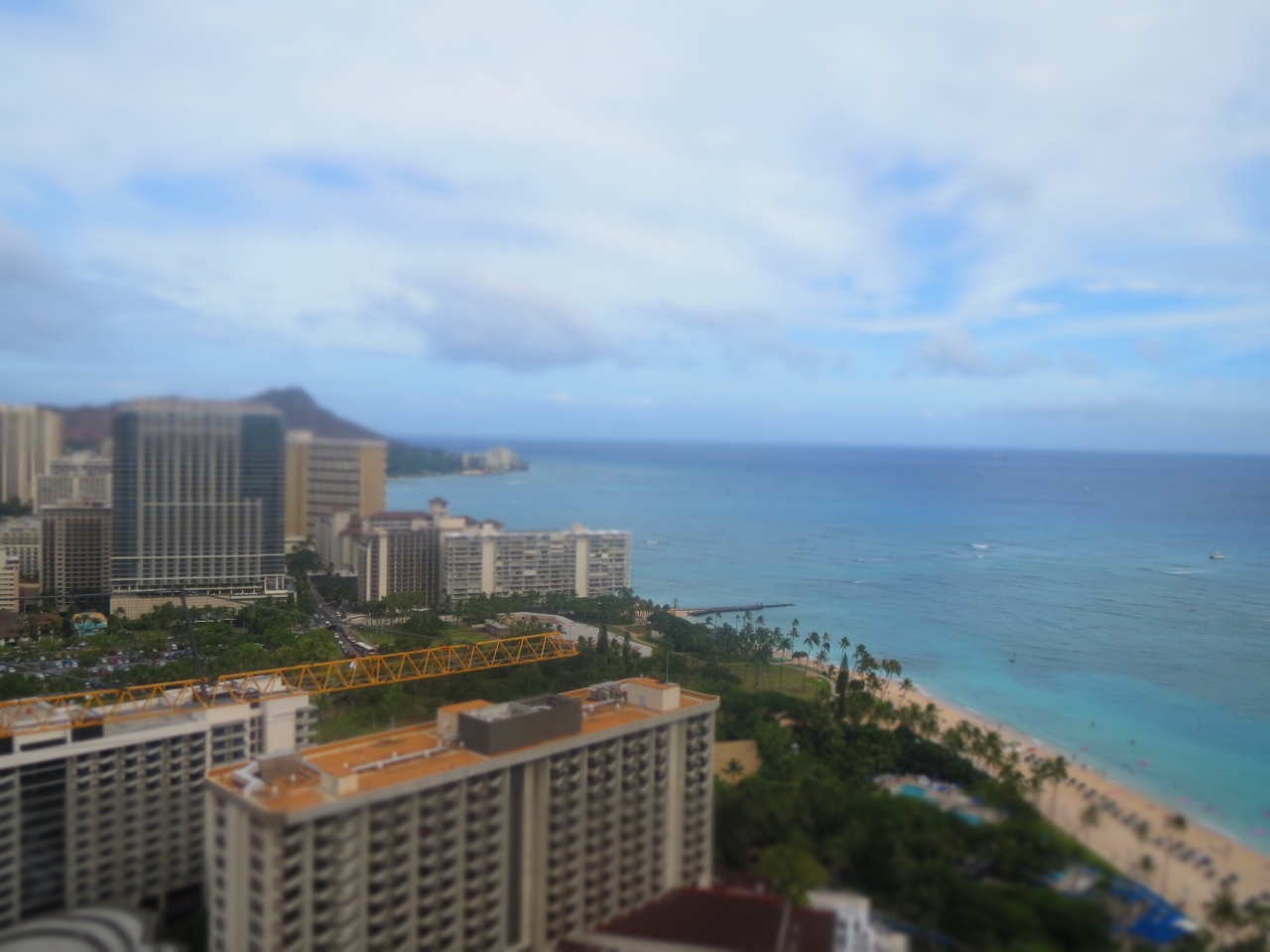 お部屋(タパタワー37階オーシャンビュー)からはダイヤモンドヘッドが見えて、素晴らしい景色でした。棟指定なしのオーシャンビュールームで予約しましたが、ハイシーズンだったためかレインボータワーは無理でタパでした。が、立地は便利だったので、シャワー固定式以外は不満なしでした!