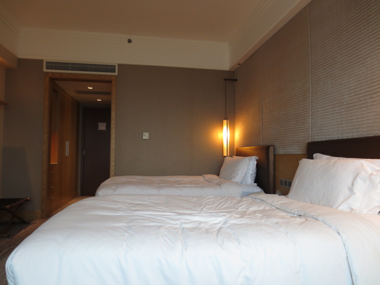 フロントで英語でチェックインと伝えると、35階(だったと思う)へ上がってくれ、とだけ言われてよく分からないまま上がると、そこにまた小さい受付があり、そちらでパスポート&クレジットカードを提示してカードキーを受け取りました。