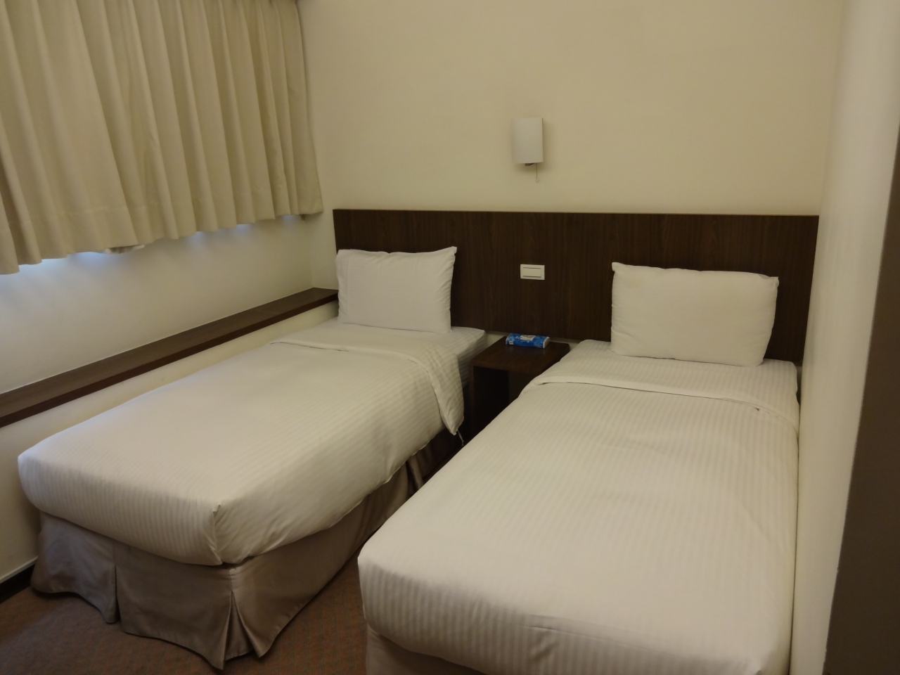 お部屋は狭いですが、ポット、冷蔵庫、セーフティボックス、バスタブと、必要な設備は整っています。