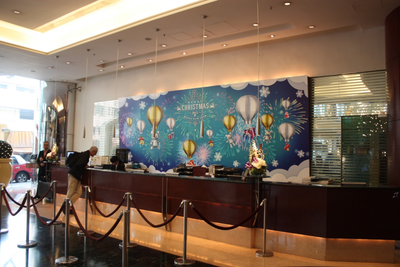 此方のホテルは 彌敦道(ネイザンロード.)の佐敦(Jordan)駅付近で尖沙咀(Tsim Sha Tsui)へも徒歩圏内です。今回は 空港からエアポートバスA21で11番目のバス停で降りてきました。九龍公園を目指せば間違えることはありません。ロビーとフロントに仕切られた作りになっていてロビーの奥には中国行きのバスが発着するターミナルもあります。今回は 年末のカウントダウン花火を見に来ましたが、1部屋が22階のパーク側だったので、距離は有りましたが部屋から堪能させて貰いました。フロントの方は対応が良いのですが、ハウスキーパーの方が無愛想だったのが気になります。写真はホテルに併設されているバスターミナルになります。ロビーの右奥にある怪しそうな鉄扉の中がターミナルになります。エアポートエクスプレスバスも此方になりますが(毎時12分)、MIGHTY ATOM一課は 満員のため乗れませんでした。仕方なくタクシーで移動しました。此処が最後のピックアップなので難しいのかもしれません。