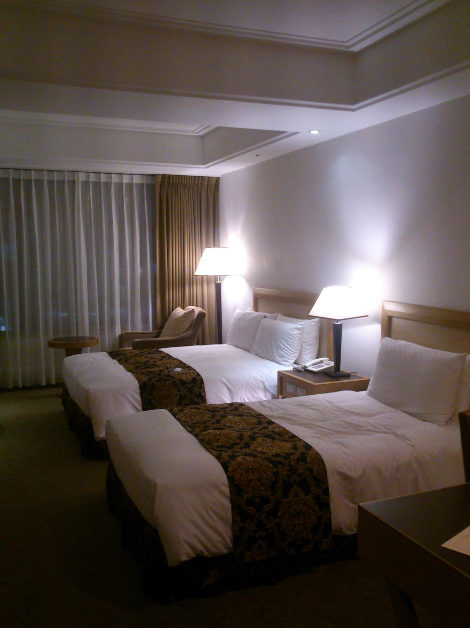 部屋はデラックスツイン。ダブルサイズベッドとシングルサイズのベッドでした。