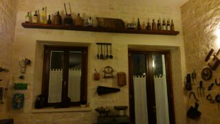 アルべロベッロの中心部までは10分位歩きますが、とんがり屋根トゥルッリがあるホテルです。ロビーには暖炉、壁には昔の農機具、調理用品が飾られ雰囲気があります。客室にも昔のアルべロベロの村の写真が掛けてありました。