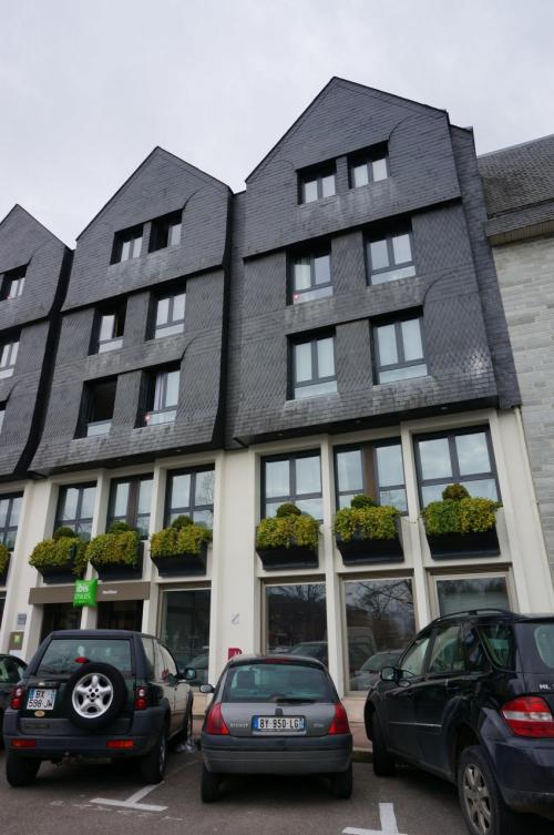 ノルマンディでも人気の街であるオンフルールにはたくさんのホテル、アパルトマン、B&Bがあります。チェーンのホテルなので鉄道旅行者にとっては少々面白みに欠けるとは思いますが、ホテルの目の前が駐車場(有料)だし、少し歩いた先には無料(もしくは、かなり安い)大型のパーキングエリアがありますので、車での旅行者には最適です。