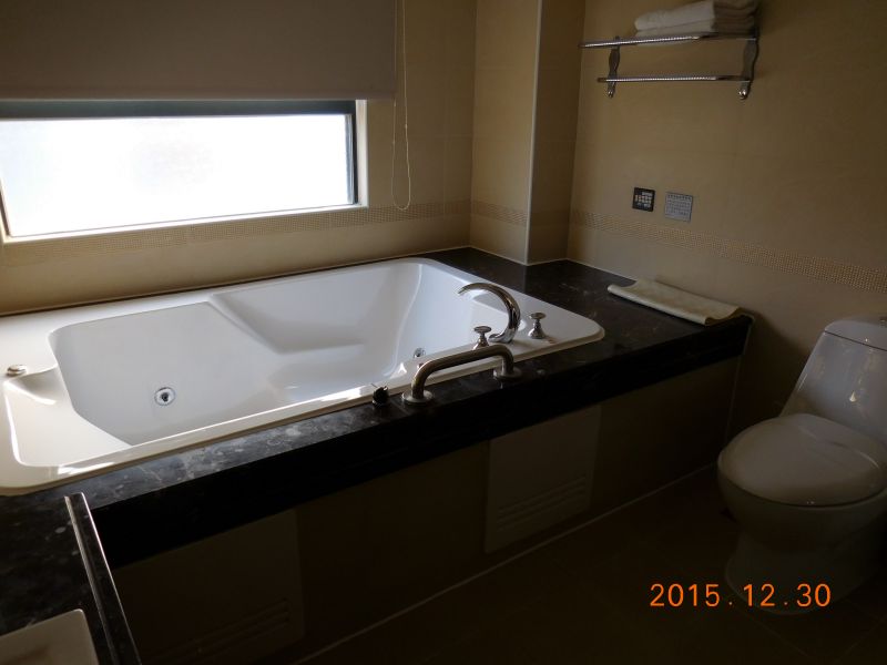 バスルームはシャワーブースが独立し、バスタブは非常に広くて深いジェットバス。