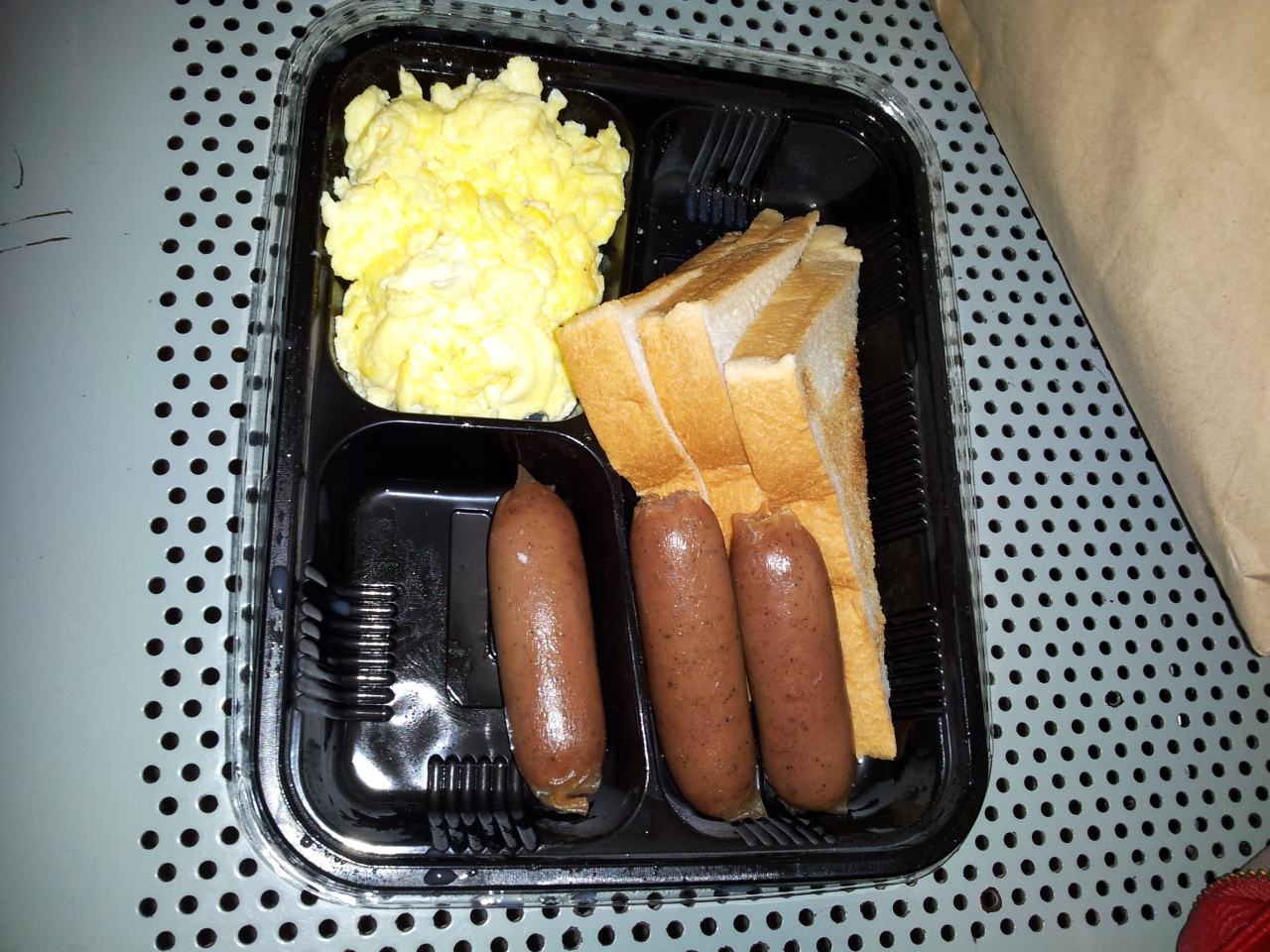 ・帰りの便が早朝だったので、朝食のお弁当を頼みました。中華、アメリカン、フィリピン料理の3種類から選べます。熱々のコーヒーも付きますので気を付けてお持ちください。