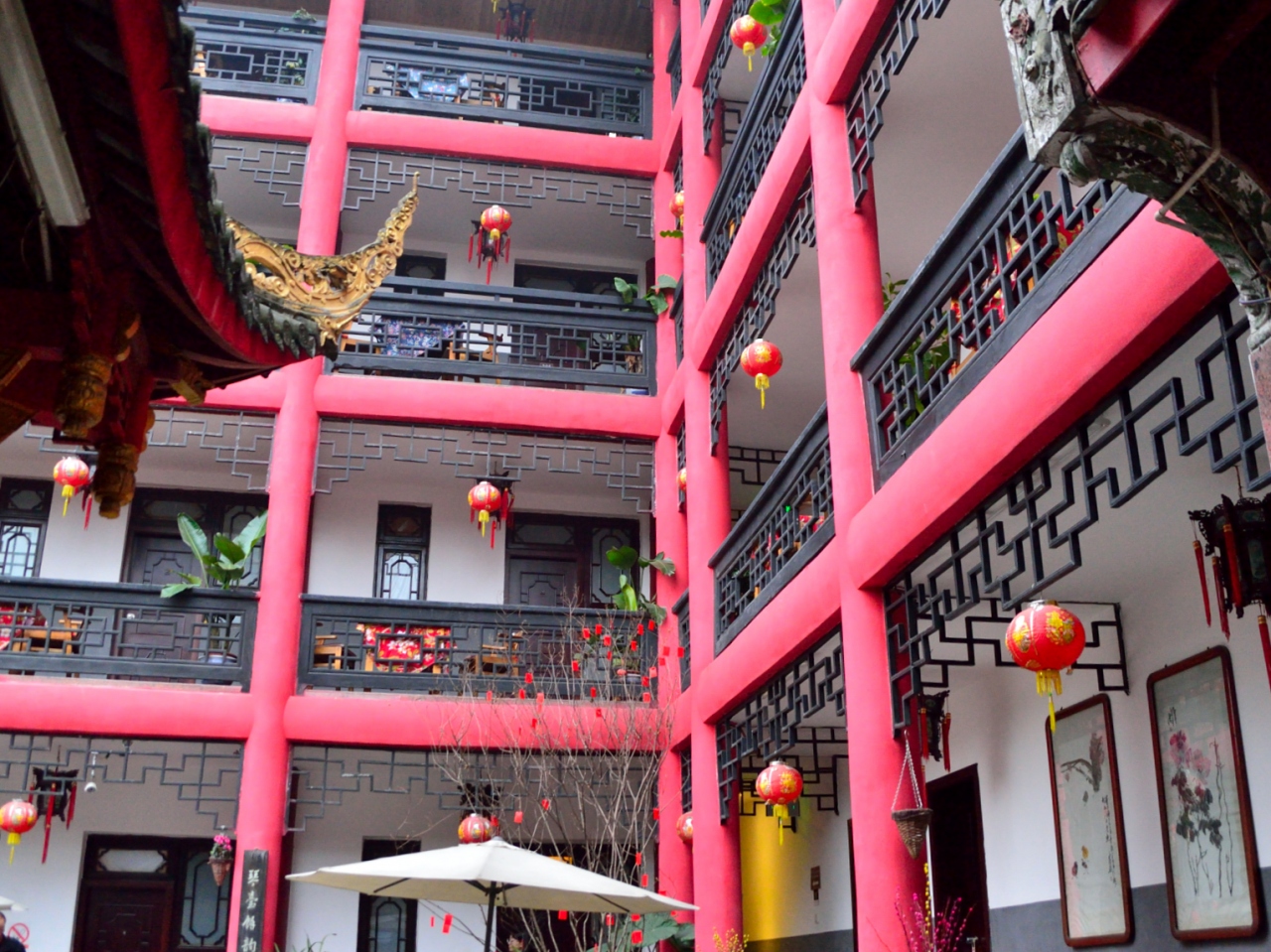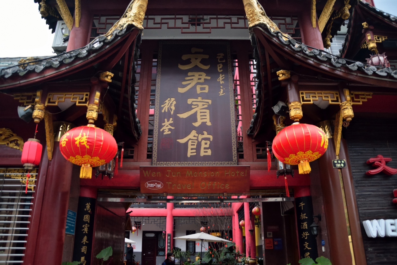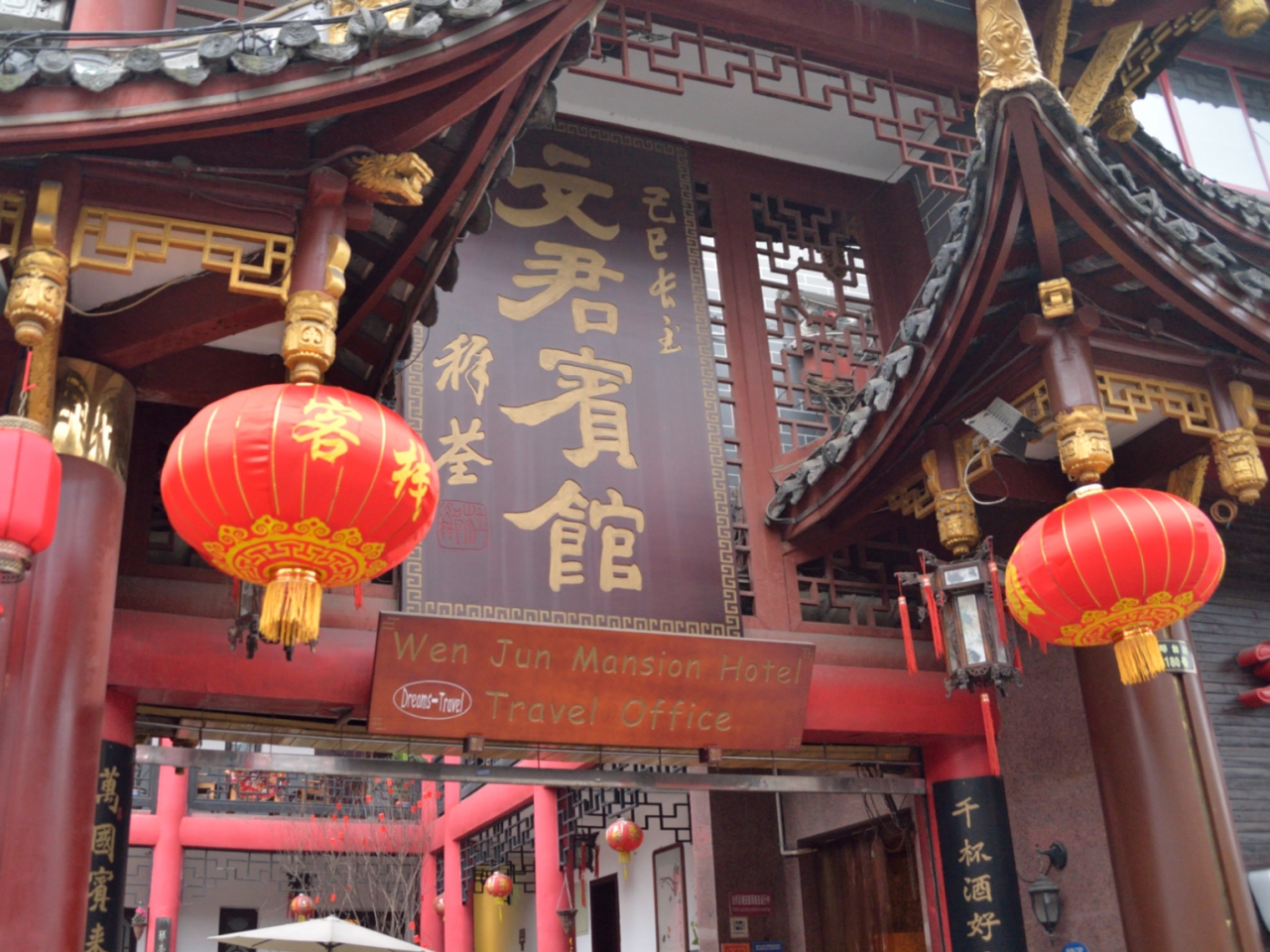 付近の建物も中国の雰囲気が出ていて面白い所ですし、観光地の寛窄巷子へは歩いて5分位で行けます。