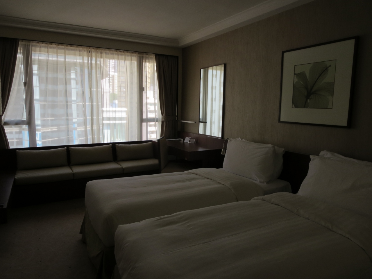 香港では、広めの客室。泊まったのは電気道側の部屋でしたが、海側の方が前に公園があって、周囲の建物と距離があるので落ち着くかもしれません。尖沙嘴やセントラル~銅鑼湾と違って、観光客が少なくて生活感があるエリア。ホテルの北側に公園があり、朝にはお年寄り達が運動したり、おしゃべりしたりしています。ノースポイントの市場へも歩いて行くことができます。