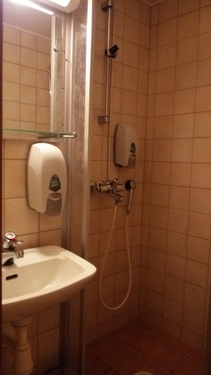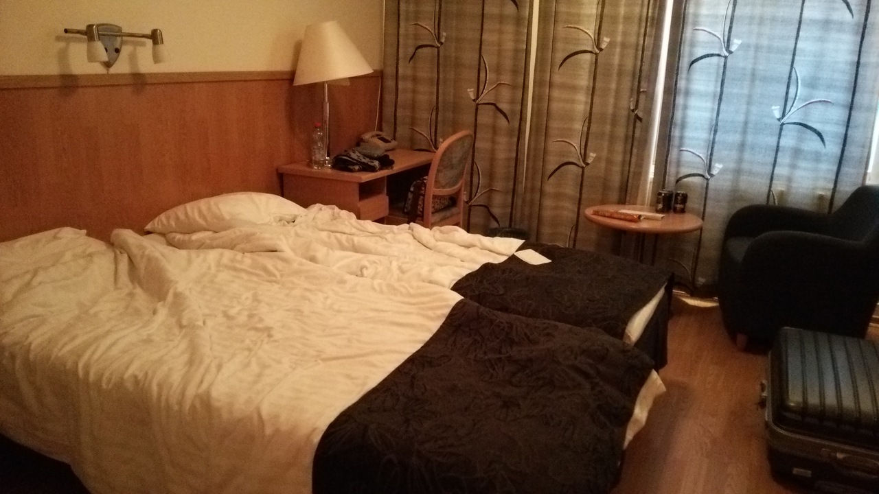 ロヴァニエミ空港からバスでホテルの目の前で降りて、バウチャーを見せてチェックイン。部屋は1階だったので、楽でした。部屋にはタオルとドライヤーと冷蔵庫とテレビのみ。冷蔵庫は冷えてなかったので、窓を開けてビールを冷やしました。シャワーは床が水浸しになるので、足吹きマットは先に引かない方がいいし、スリッパもドアの近くに置く方が濡れずにすみます。でも、スタッフの方はいい方たちだったので、値段重視なら問題なく。