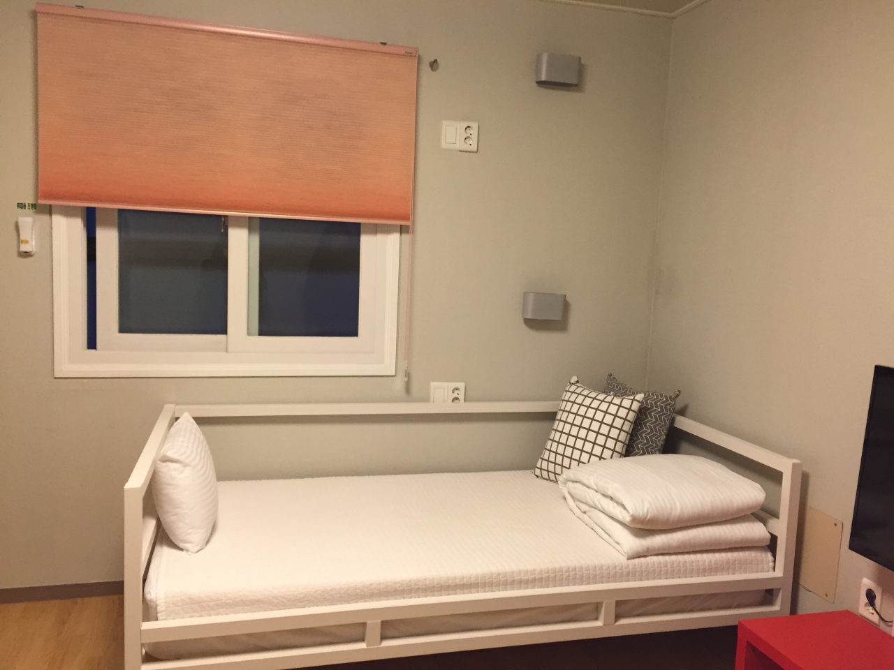 西面駅からロッテホテルの裏通り(徒歩10分くらい)の場所にあり最初は見つけにくいですが一度覚えたら問題なくホテルに帰ることが出来ます。ホテルの入口もセキュリティーがしっかりしていて部屋のカードキーでロックを解除するか暗証番号入力で解除しないと建物の中に入ることが出来ません。(チェックインの際は入口横のインターホンで話すと中からスタッフの方が出てきて下さいました)フロントには日中なら日本語を話せるスタッフがいらっしゃいますので安心して滞在することが出来ました。