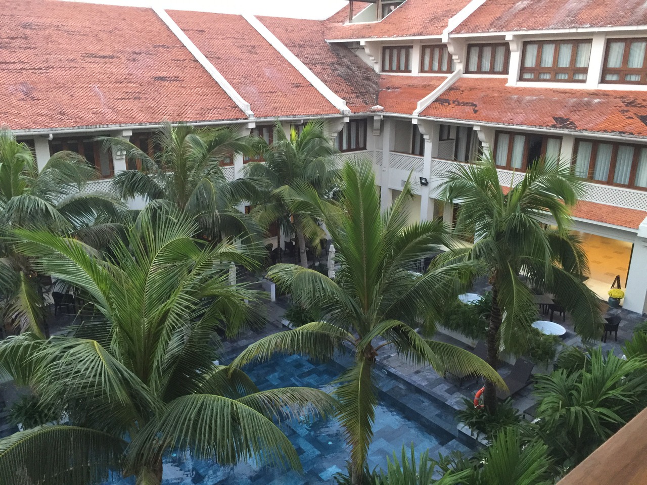 3泊しました。立地は良いです。観光スポットまで徒歩圏内。従業員は愛想は良いですが、それはやはり四つ星ホテル止まりのクオリティで、ゲストのいないところでは雑談していたりします。人数は多いものの、仕事を持て余してる人多いです。部屋は中庭に面した小さなバルコニーのある部屋。ちょっと狭い。アメニティ類は非常に貧弱で、リンスインシャンプーは髪がギシギシになります。しかもよくわからないのが、歯ブラシが1セットしか置いておらず、補充もされません。2人で泊まってるのに共有しろと??そして、エレベーターが途中で動きが止まったり、扉が半分だけしか開かなかったりして非常に恐怖感を感じました。(某○ンドラー社製)案の定2日目から使用中止になってました。朝食の口コミは非常に高くて期待してたのですが、毎日ほぼ同じメニューで味も単調。種類も少なく、まったく期待外れ。エッグスタンドのオムレツはスクランブルエッグのようなものをなんとか固めたようなシロモノで、素人が作っているようでした。みそ汁もありますがとても飲めたものじゃありません。寿司も思わず吐き出すレベル。和食の印象を貶めるだけです。唯一、スパの技術はかなり良かったのが救いですが、その分の値段が上乗せされていることを考慮すると、宿泊代の割高感はハンパないです。結論としては、ダナンのビーチリゾートホテルに泊まって、タクシーかツアーでホイアンに来るというのが1番かなとおもいました。