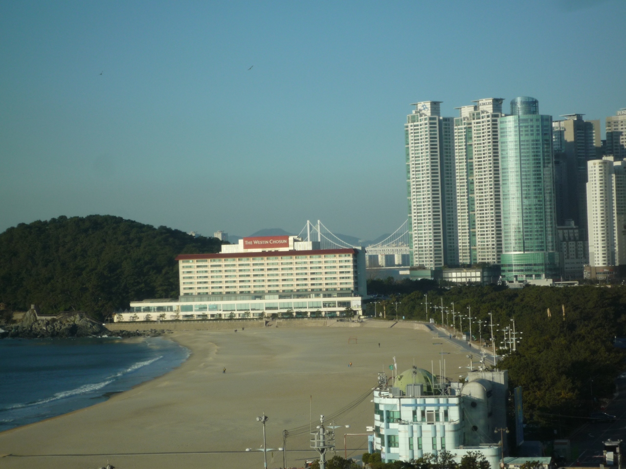 海雲台駅まで一本道を歩いて10分位、コンビニは目の前のシークラウドホテルが入っているビルにあります。なかなか使い勝手のよいホテルでした。