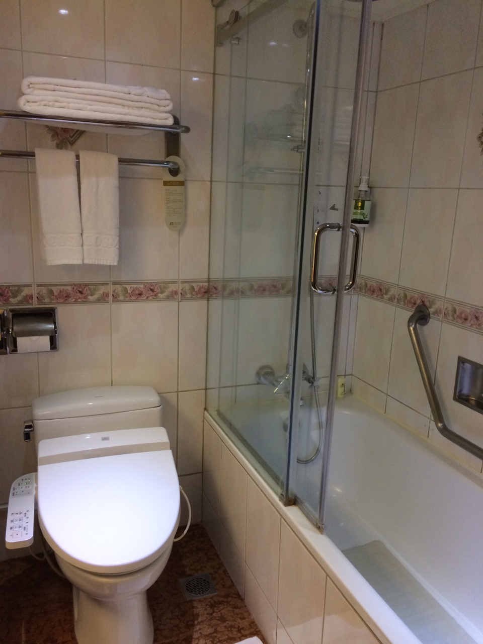 バスはカーテンではなく透明の扉式。シャンプーとボディーソープがひとつになっているボトル型とコンディショナーは小さい物が置いてありました。日本から持参したものを使いましたので使用感はわかりません。