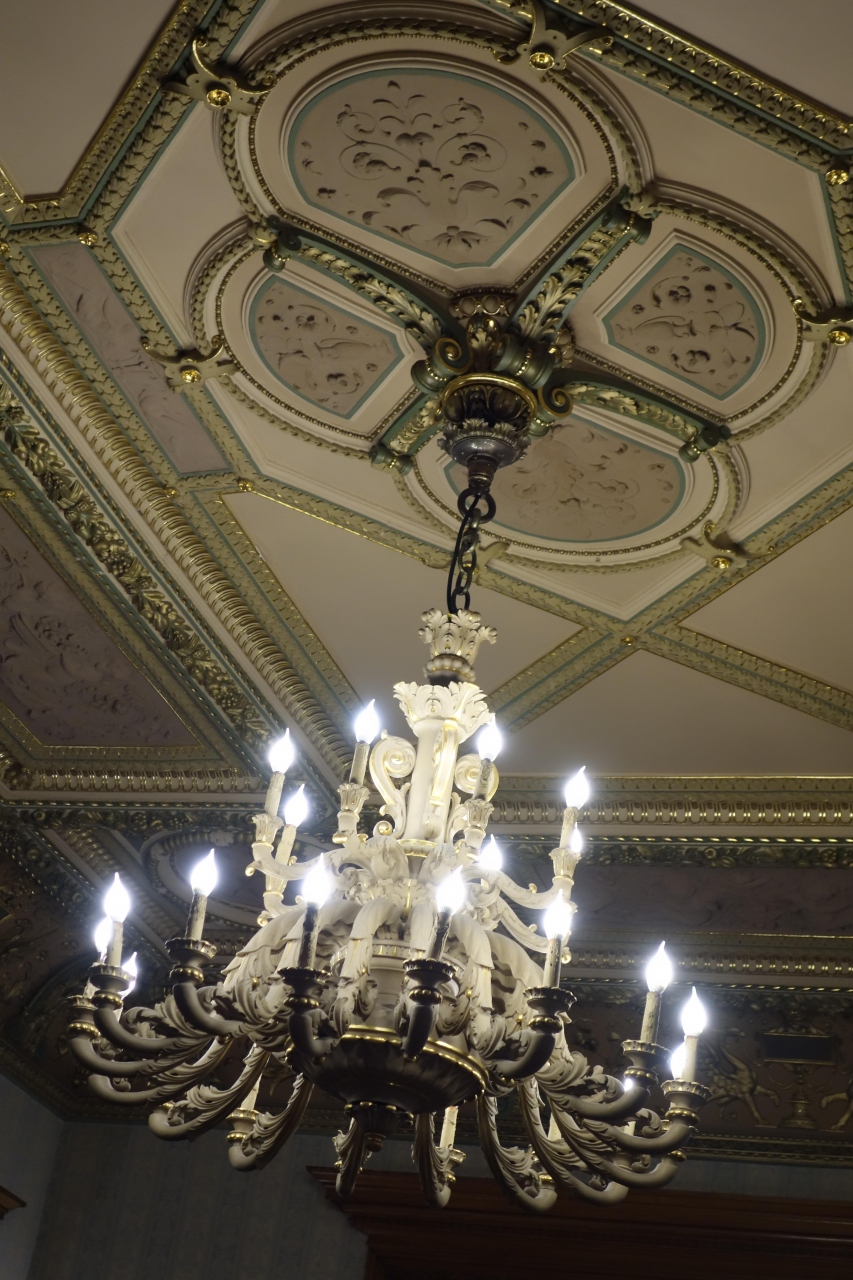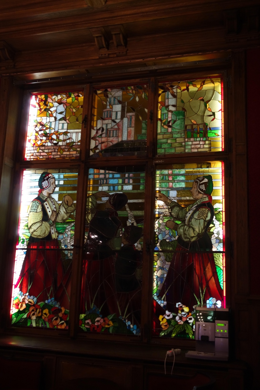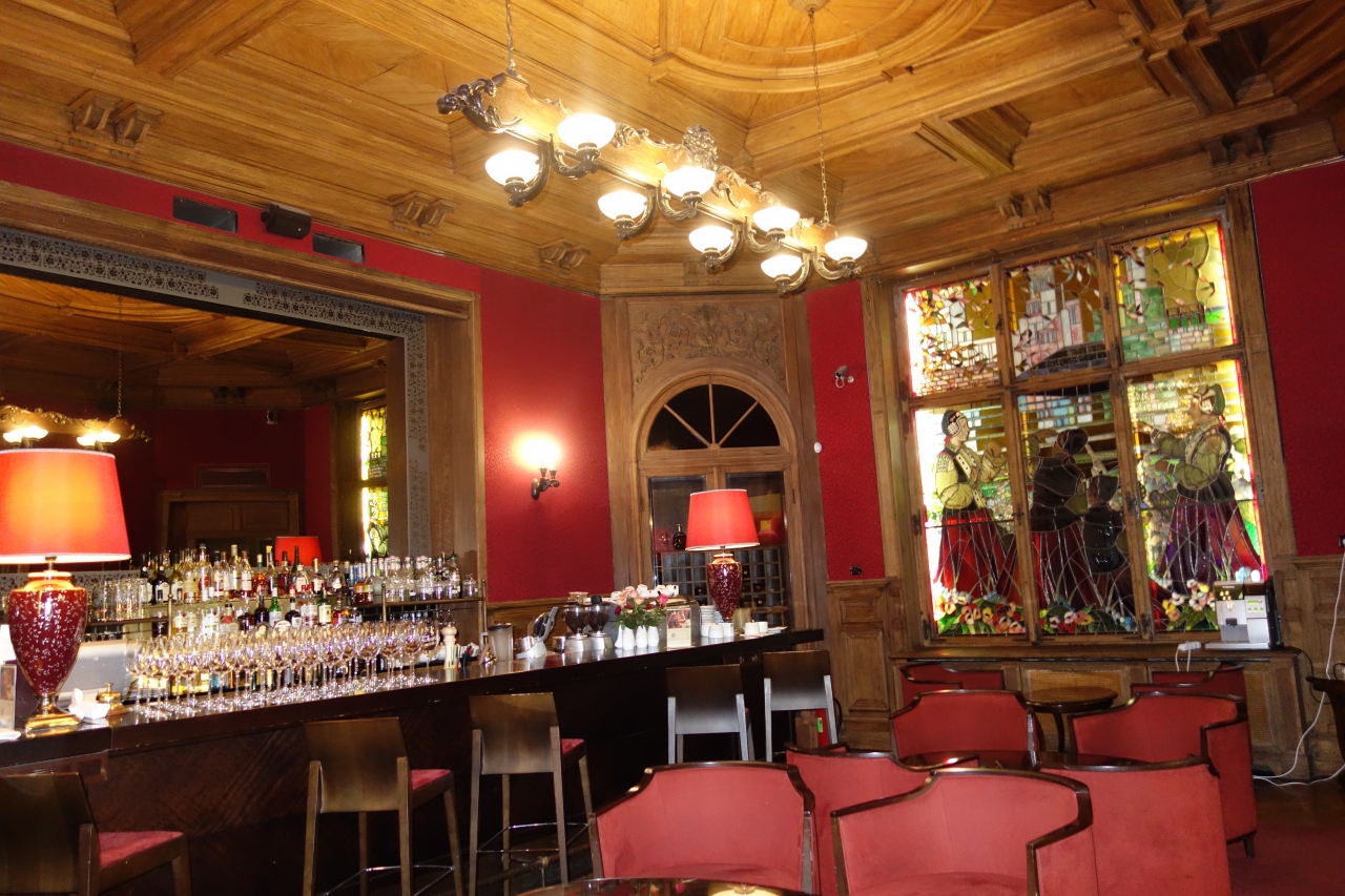 バーの両側には大きなステンドグラスがあり、朝食レストランの天井には素敵な装飾がされていて、目を奪われてしまいいつまでも見続けていたいほどです。
