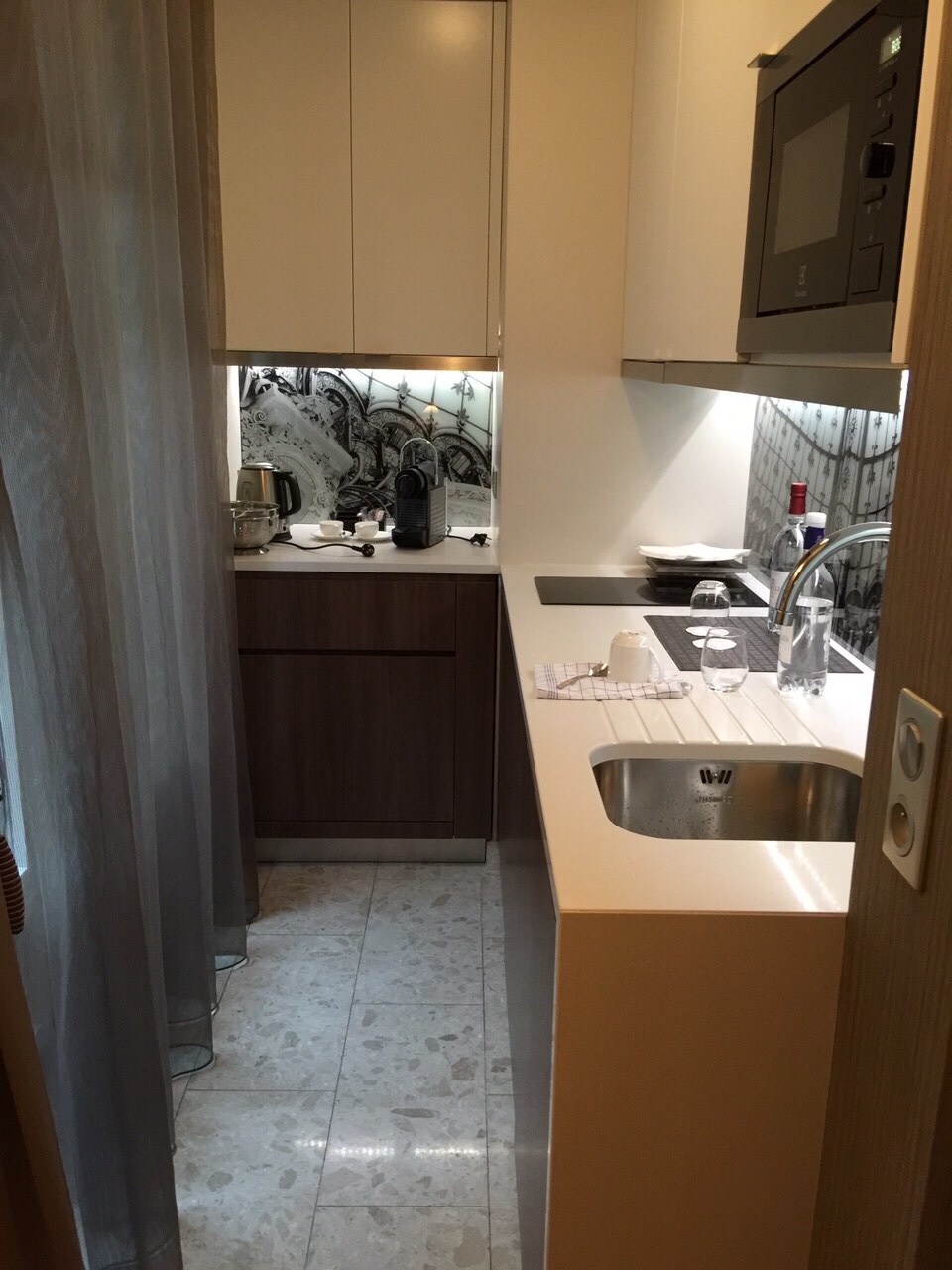 mybusやemiトラベル、パリシティビジョンも徒歩5分以内で、オプショナルツアーが利用しやすい。飲食店の多い地区ですが、キッチンでの自炊も可能。調味料はないものの、自炊のための設備は整っています。調理器具や食器、カラトリー、ポットやコーヒーマシンや電子レンジ、食洗機や洗濯機、冷蔵庫も完備。疲れた胃に、電子レンジでチンしたレトルトの卵粥がやさしかったです。