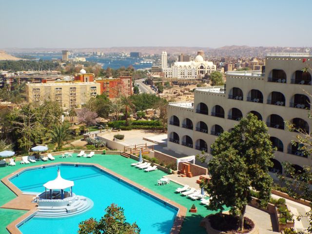 街からは少し離れているが、ナイル川を見下ろす高台にあり、静かで過ごしやすい。ホテルを出てすぐのところにヌビア博物館があり、徒歩圏内にも見どころがあるのは、うれしい。ホテルの真ん中にプールがある。屋上からは、アスワンの街が一望できる。やや古ぼけた感じであるが、エジプトらしいといえば、エジプトらしくて味がある。