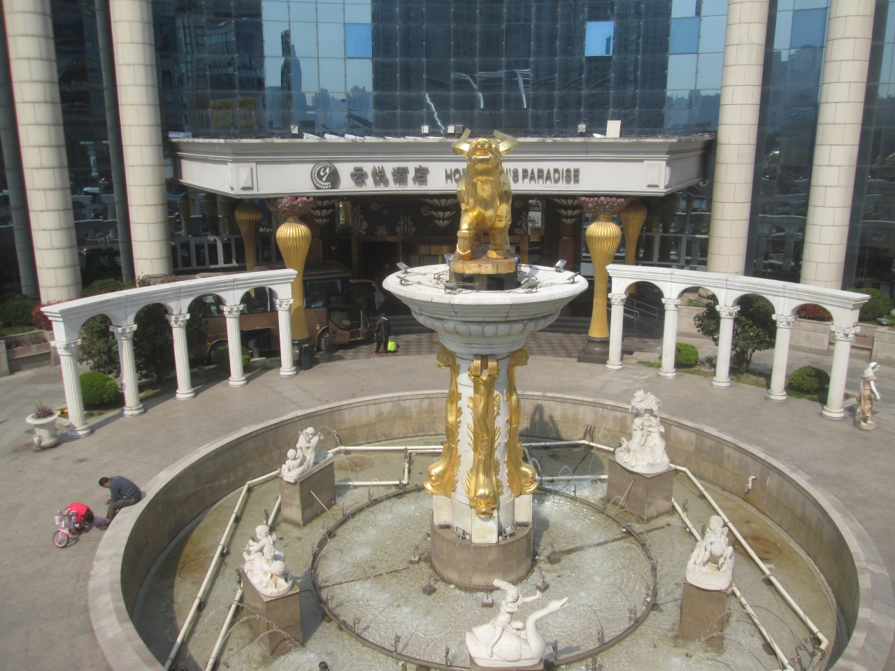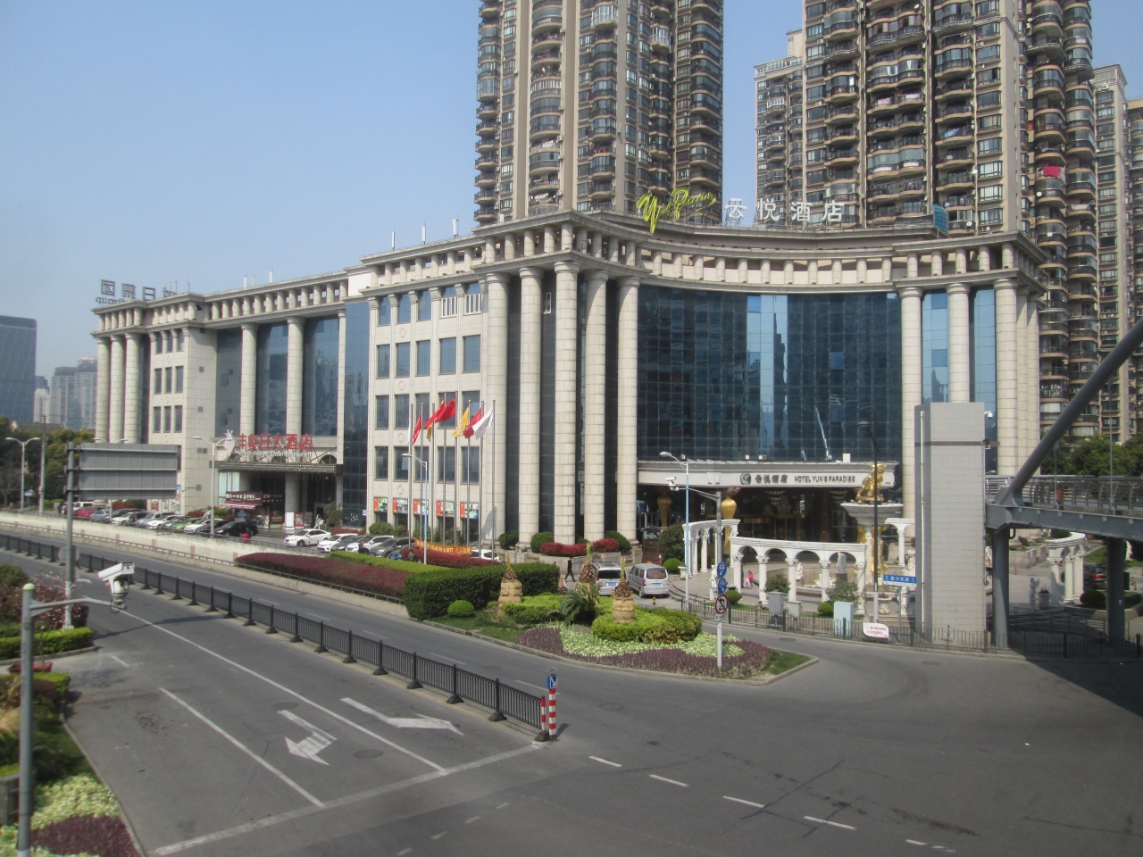 河南南路と復興東路が交差するポイントに建つビジネス向けの大型ホテルである。上海市地下鉄「老西駅」が最寄りで、豫園、新天地などは徒歩圏内の立地である。エントランスには西洋風の噴水があった。1泊1万円程度で宿泊できる。
