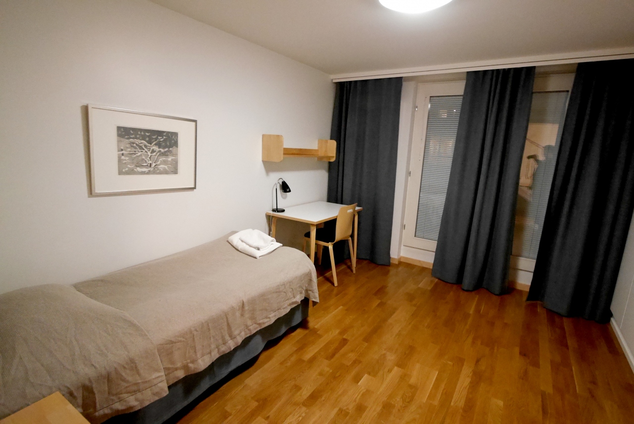 LH484便のインシデントのために,結局同日中にはタリンに行くことができず,急遽Booking.Comより探したToolo Towersの4ルームアパートメントを予約.2000より遅くには,守衛さんから鍵をもらうということだったのでA棟のレセプションにいる守衛さんからもらう.ここはヘルシンキ大学とアールト大学の訪問者用の宿泊施設だ.広い間取りとサウナ付き!う!