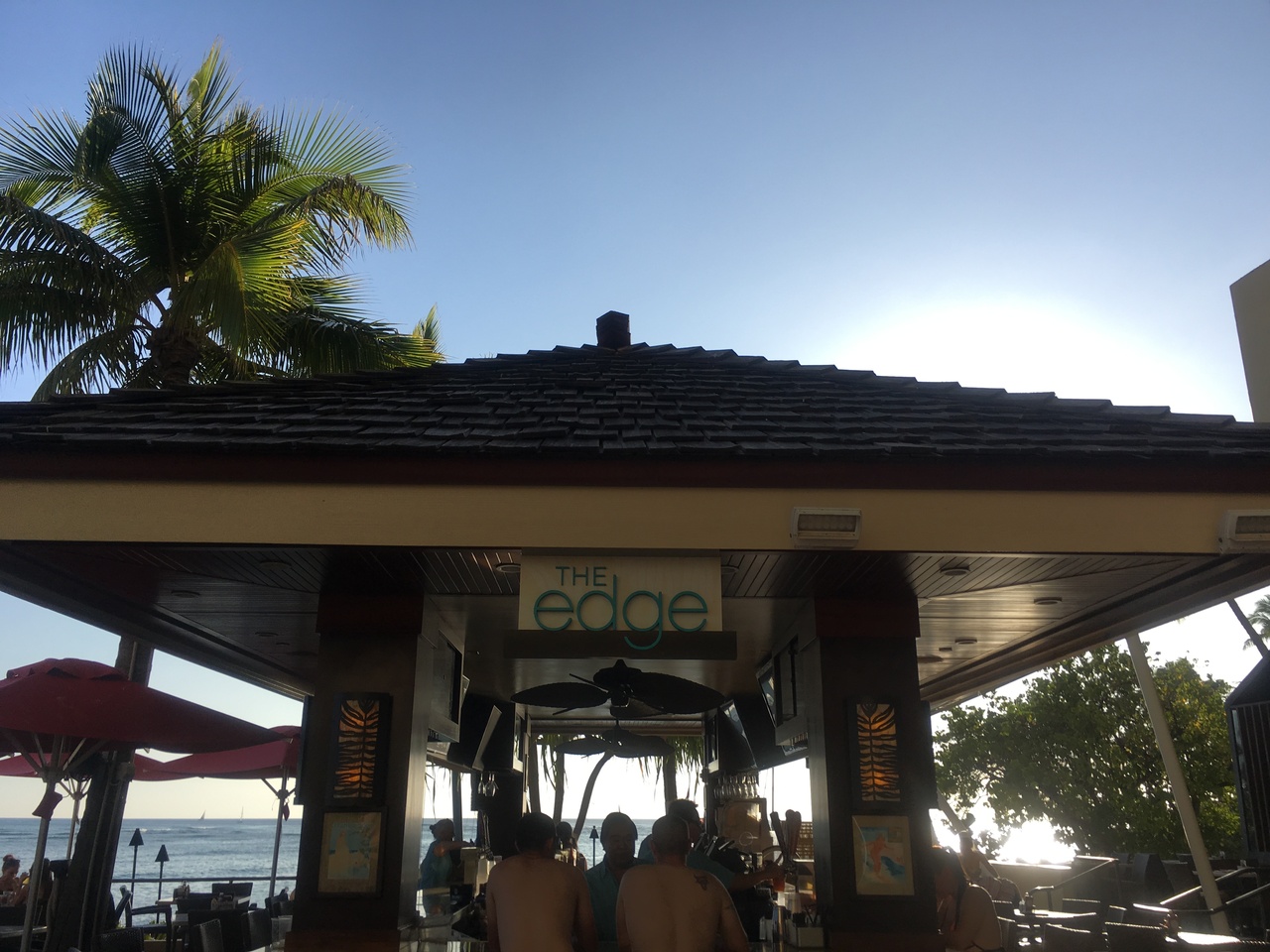 プールの傍には、ちょっとしたバー、エッジオブワイキキ。カクテルかな、と思いつつ、バドワイザーなんかで、ワイキキビーチとダイアモンドヘッド、そして、ダイアモンドヘッドを赤く染める夕陽を堪能しました。