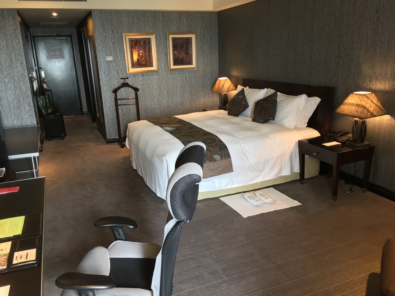 部屋は18階の西側で部屋の窓からは、台南の街並みや遠くに安平や海が見えて景色は抜群でした。どうやらアップグレードをして頂いたようで、アーバンルームのキングサイズのダブルベッドの部屋でした。部屋のサイズも42m2と広く、水回りは清潔で使いやすく、独立したシャワーブース、セパレートバス、トイレはウォシュレット付きでした。又ベッドの寝心地が最高で知らぬ間に寝入る程でした。