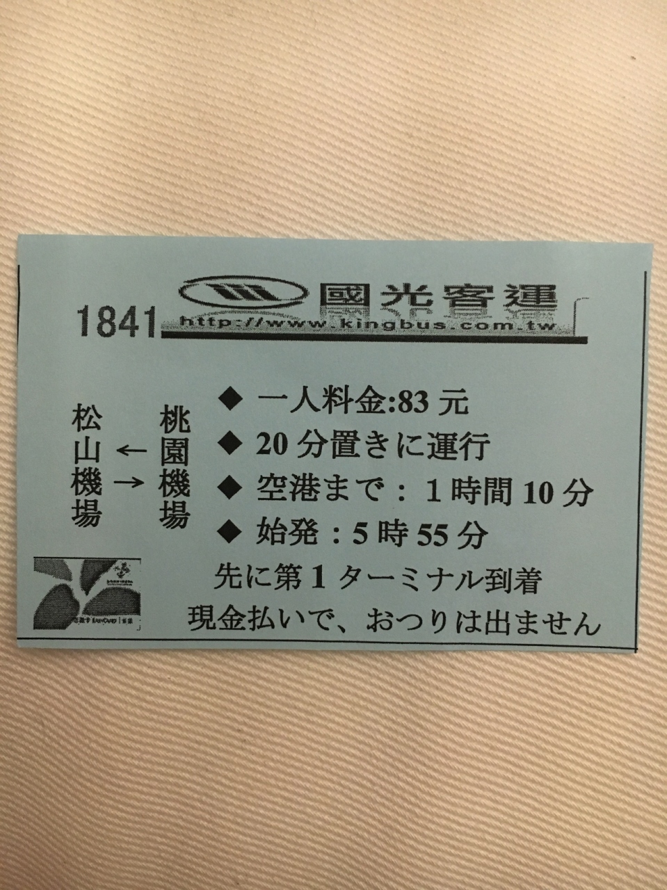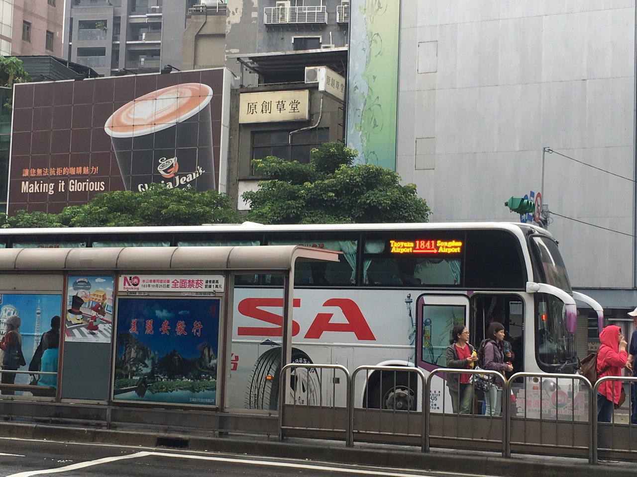 また桃園空港の行き帰りのバス(國光客運1841、バス停:民權中山路)、市内バスのバス停が斜め前にあるのも便利です。