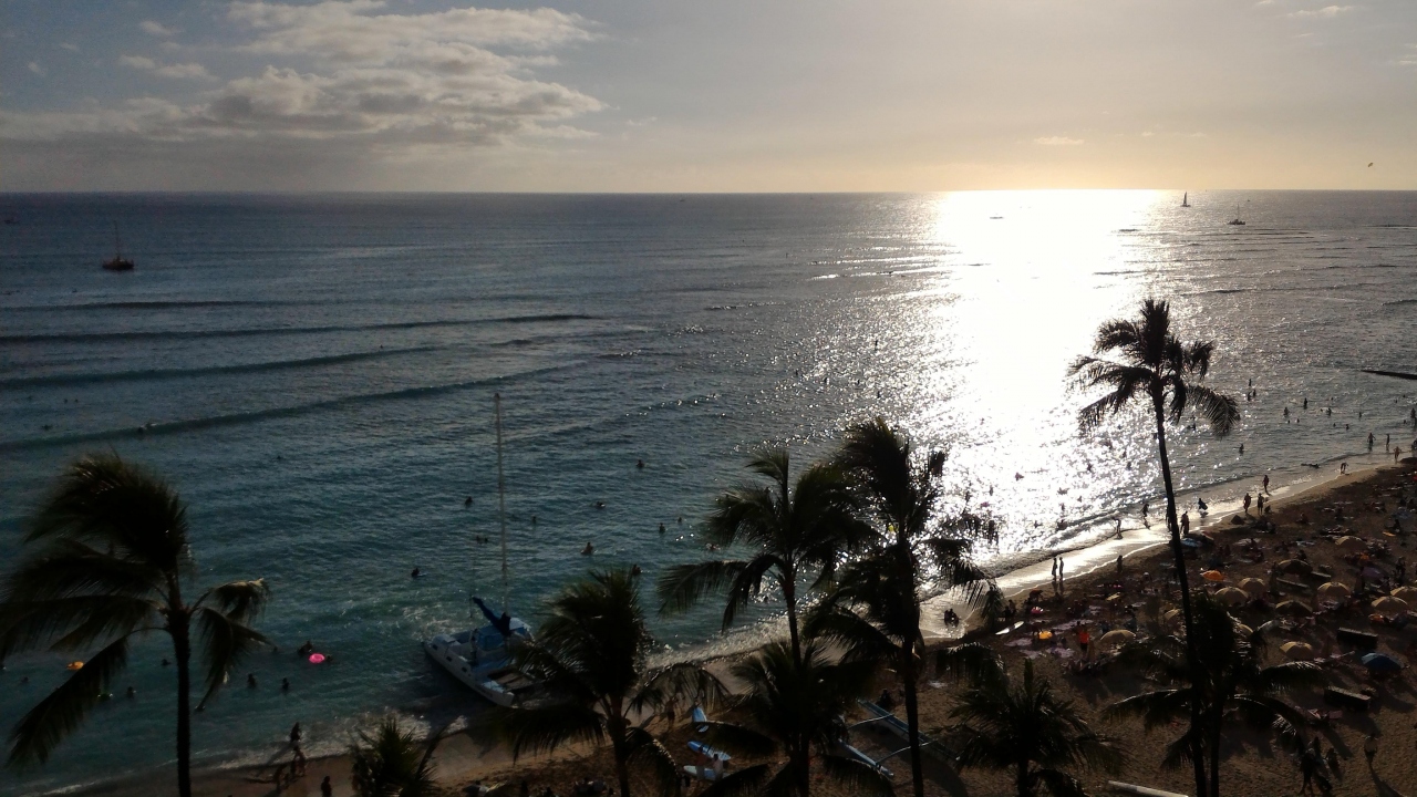 ワイキキビーチが目の前にあるホテルで、ホテルを出ると、そこはビーチです。さすがにビーチに面しているだけあって、ホテルの部屋から見る景色は全面ビーチで、素晴らしいです。比較的ビーチの端の方にあるので、ホテル周辺静かなのも良いです。