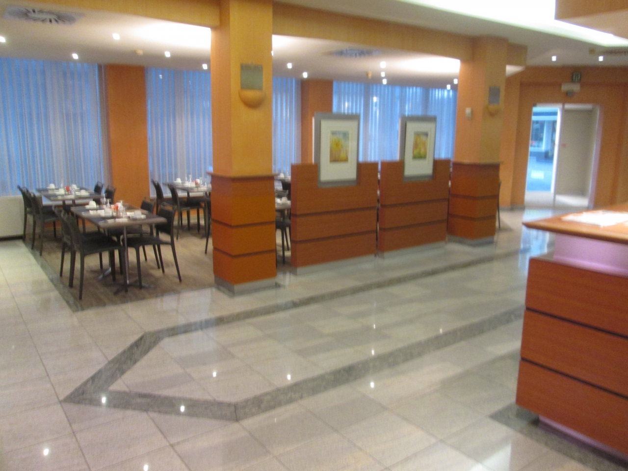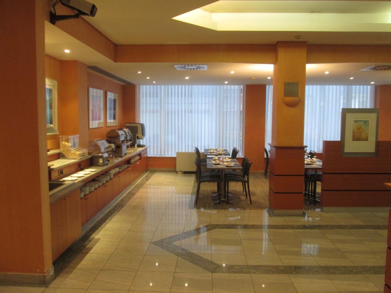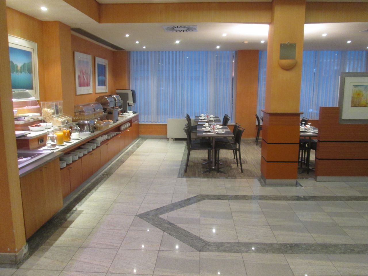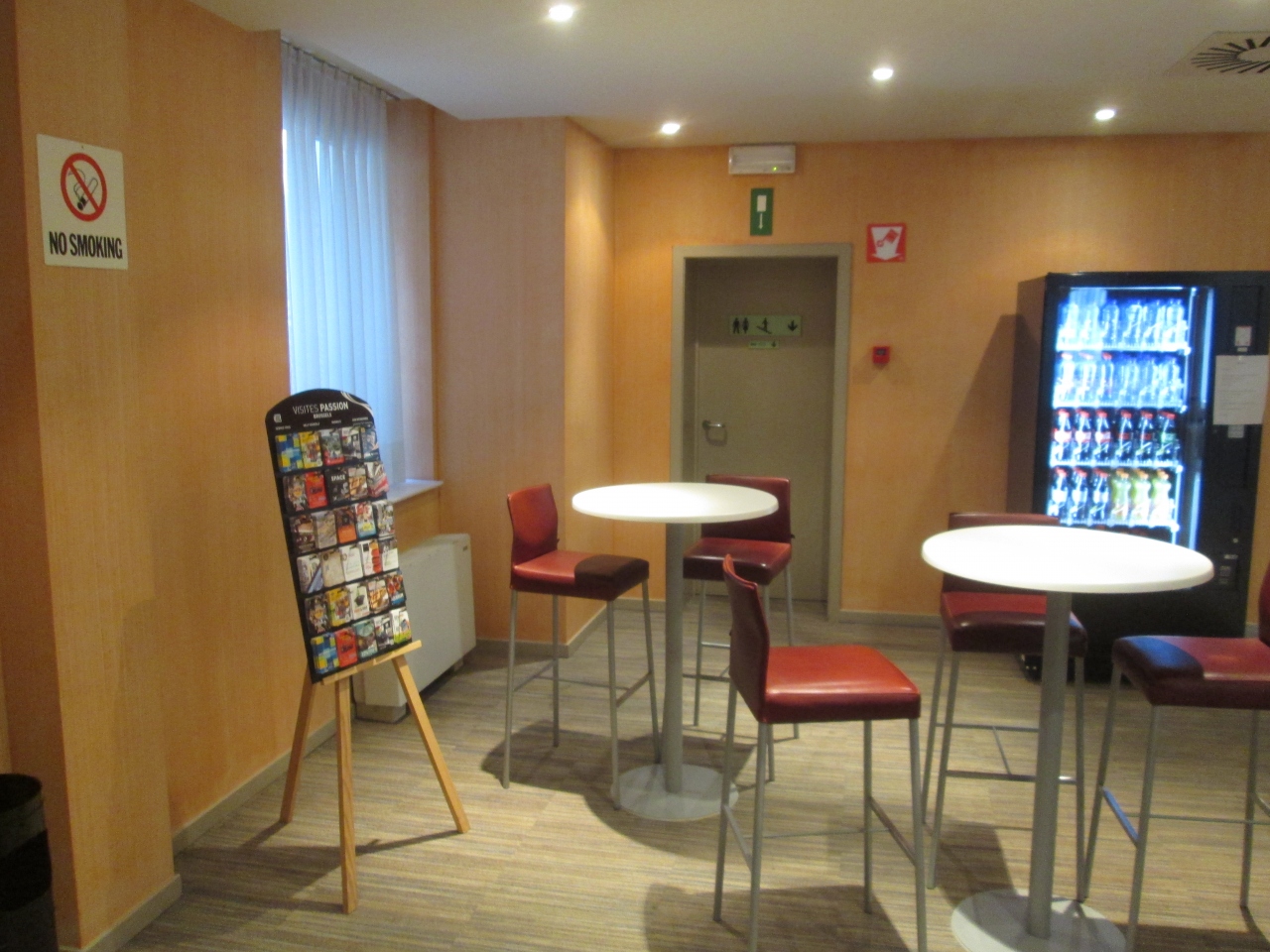 朝食は1階の会場で利用できる。ビュッフェ式の朝食で、ヨーロッパの朝食にしては種類豊富でハム、チーズなどのほかにホットメニューが置いてあった。料金は15ユーロであった。1階の共有スペースには自動販売機が置いてあり、ドリンク類が購入できる。
