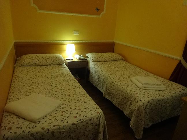 ナポリ中央駅から徒歩で5分位の所にあります。ツインで利用しましたが、とっても狭い部屋でした。もちろんスーツケースを広げる事はできません。ただ料金が安く便利な場所なので寝るだけと割り切って利用すれば問題ないです。品数は少ないですが、朝食が付いていました。