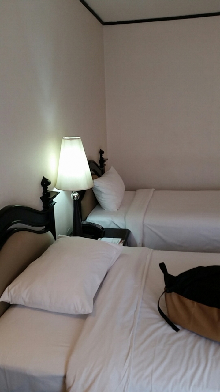 部屋は、ダブルかツインで、1人なら十分すぎる広さ。それに、この値段で小さいながらバスタブがあるのは嬉しい。バンコクではありえない。