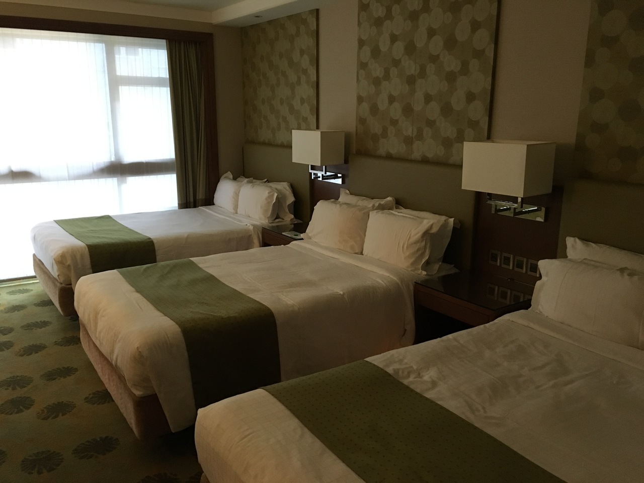 もともとクイーンサイズベッド二つで予約していましたが、チェックイン時に会員カードはお持ちですかと聞かれ、持っていないというと、得点が色々あるから入ったらどうか、と言われ入会したところ、部屋は三つベッドがある部屋にアップグレードされ、お土産に立派なマグボトルもいただき、フリードリンク券までいただき感動しました。