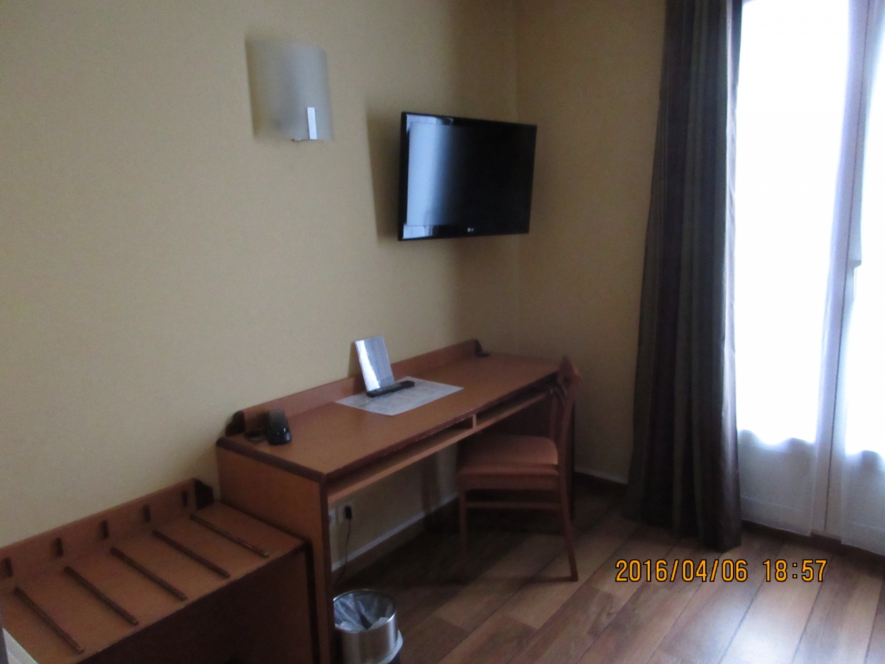シャルルドゴール空港からオルリー空港への乗り換え駅にあるので便利です。受付が日本式の2階にあるのですが、そこまでは階段しかないので大変です。部屋はかなり狭いのですが、ホテル事情が悪いパリでは諦めるしかありません。宿泊料のほかにCityTaxを一人当たり0.99ユーロ取られます。