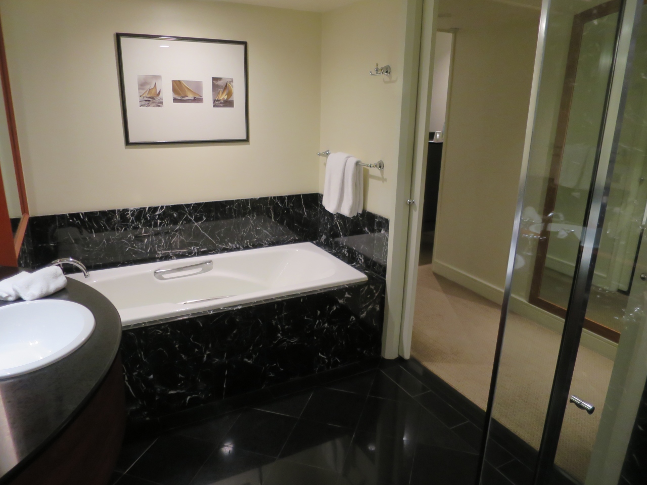 バスルームはシャワーブースも有り、このクラスにしては上出来。