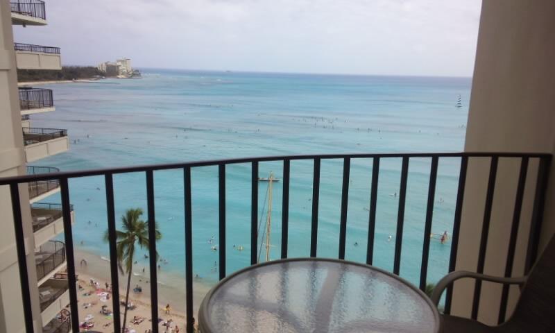 ラナイで海を見ながらのランチすることが今回の一番の目的。サンライズ、サンセットを見たかったのですがダイヤモンドヘッド側の部屋でしたので見ることはできませんでした。ただ、近くにあるロイヤルハワイアンセンターのフードコートで毎日ガーリックシュリンプやタコベル、ピザ等をテイクアウトしてスパークリングワインを飲みながら癒しの光景に大満足。このホテルのデラックスオーシャンビューは大きなテーブルでしたからたくさんお料理並べることができました。