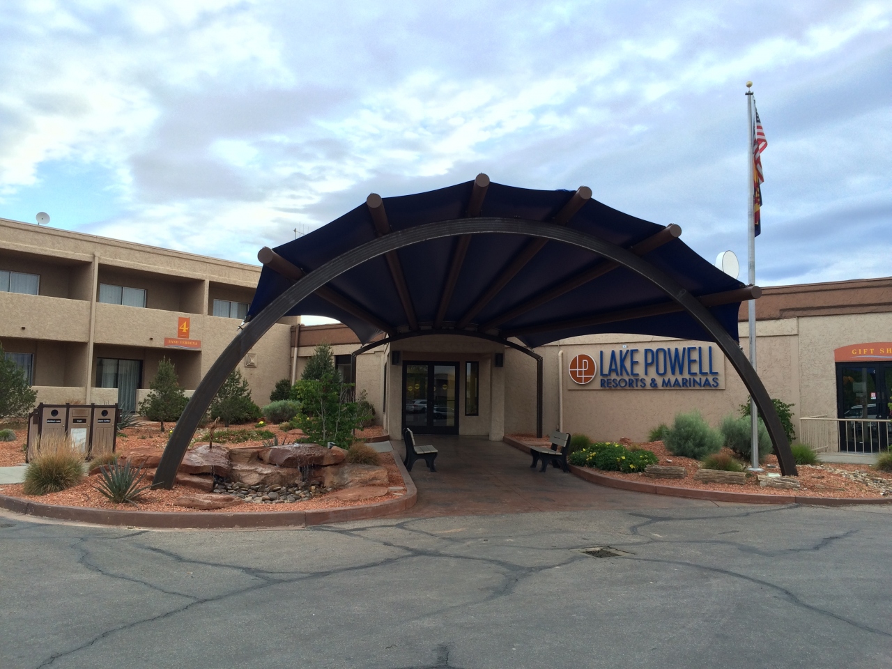 パウエル湖畔に佇む大型のロッジ風ホテル。