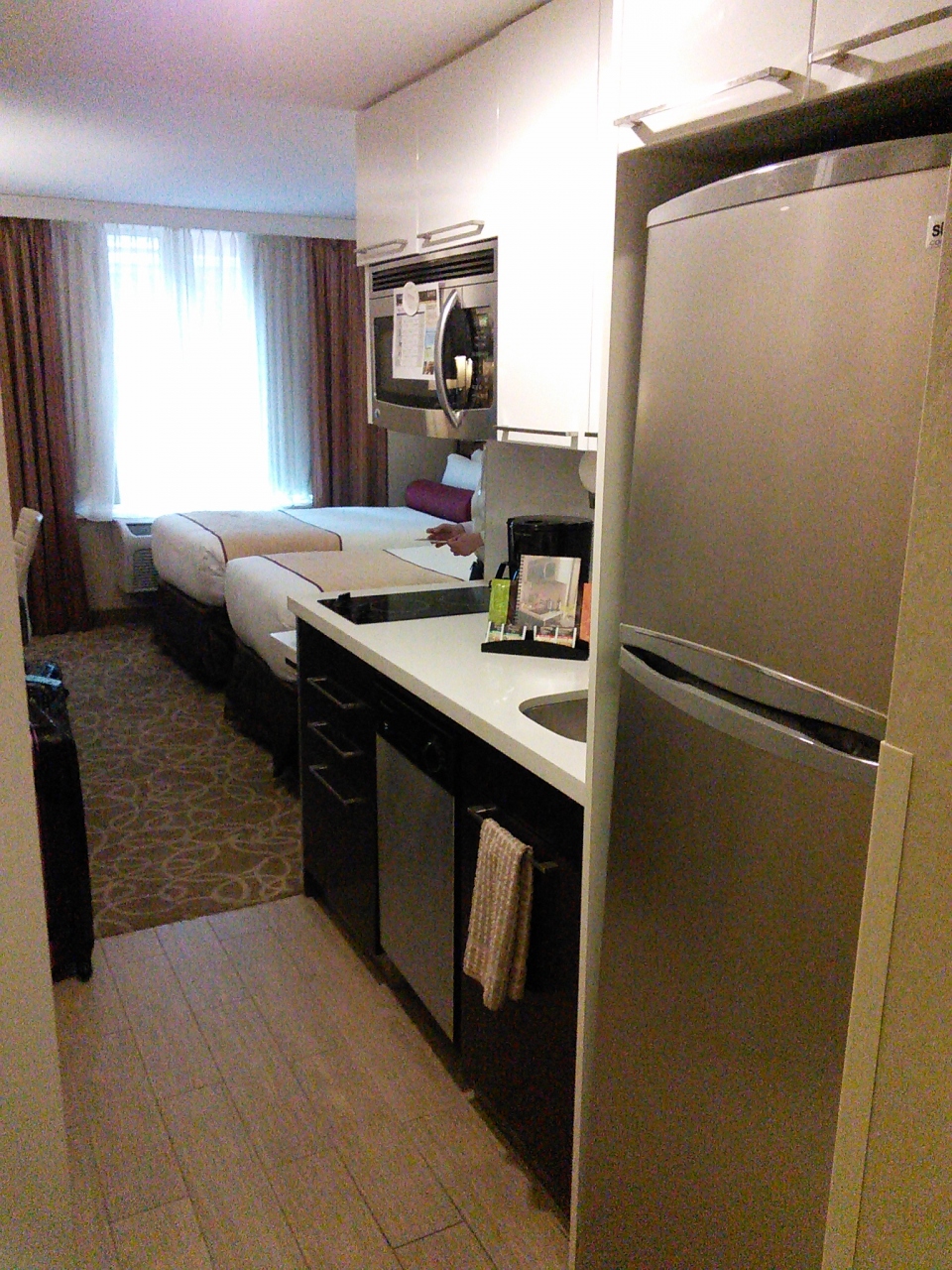 タイムズスクエアから徒歩圏内で便利な場所であること、キッチン、朝食がついていてそれなりの値段であることが理由でした。