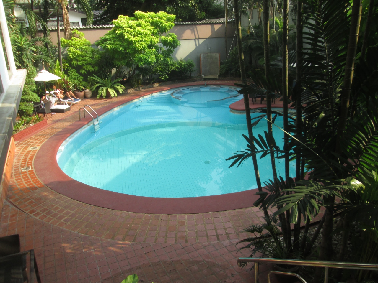 日本を出発するときは雪は降らないものの凍えるように寒かったが、バンコクは常夏日和であった。日中外出すると汗ばむくらいで、このホテルは外出先から戻ってから部屋に荷物を置き、すぐに深いプールに飛び込むことができる。