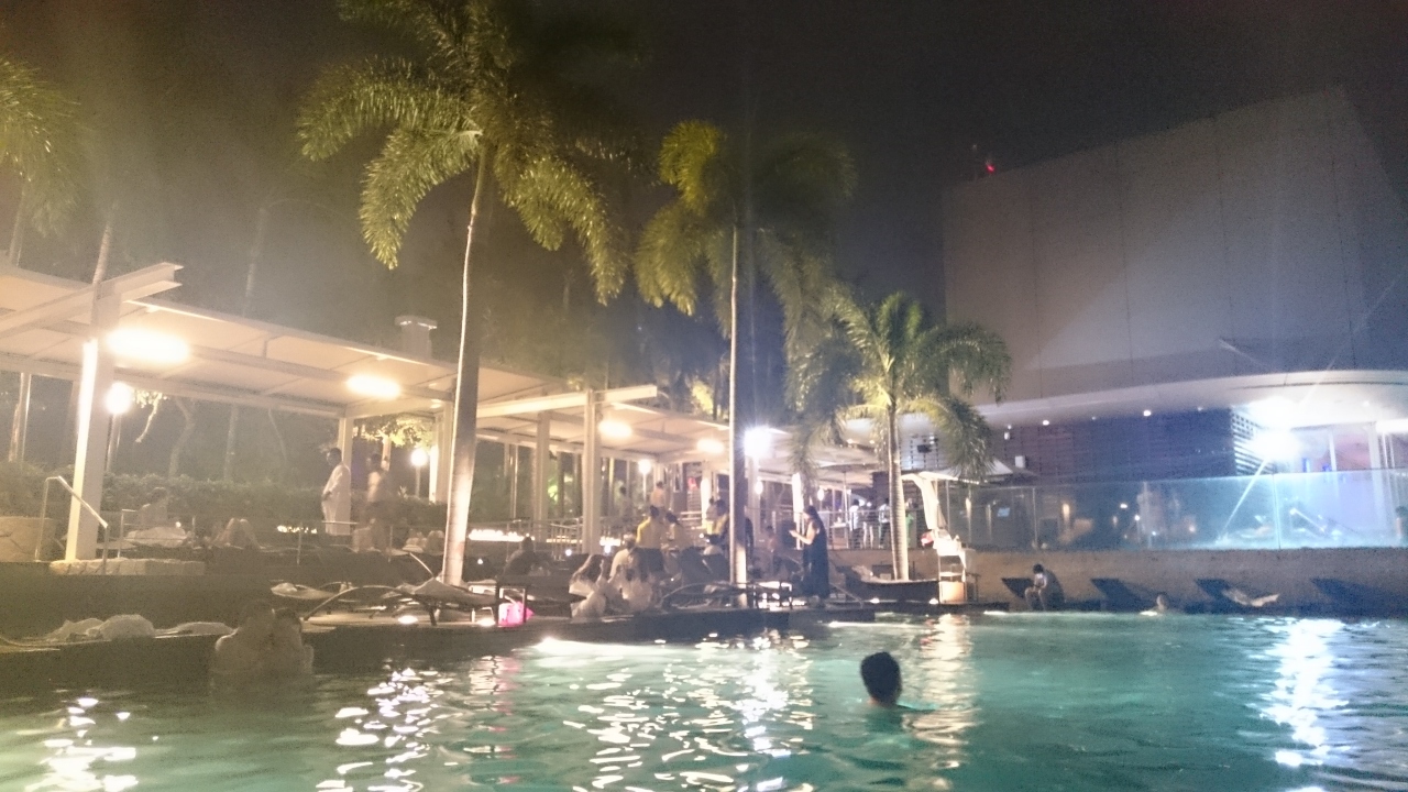 夜にプールに行きましたが、1時間ほど素敵なムードに包まれた時間を過ごしました。