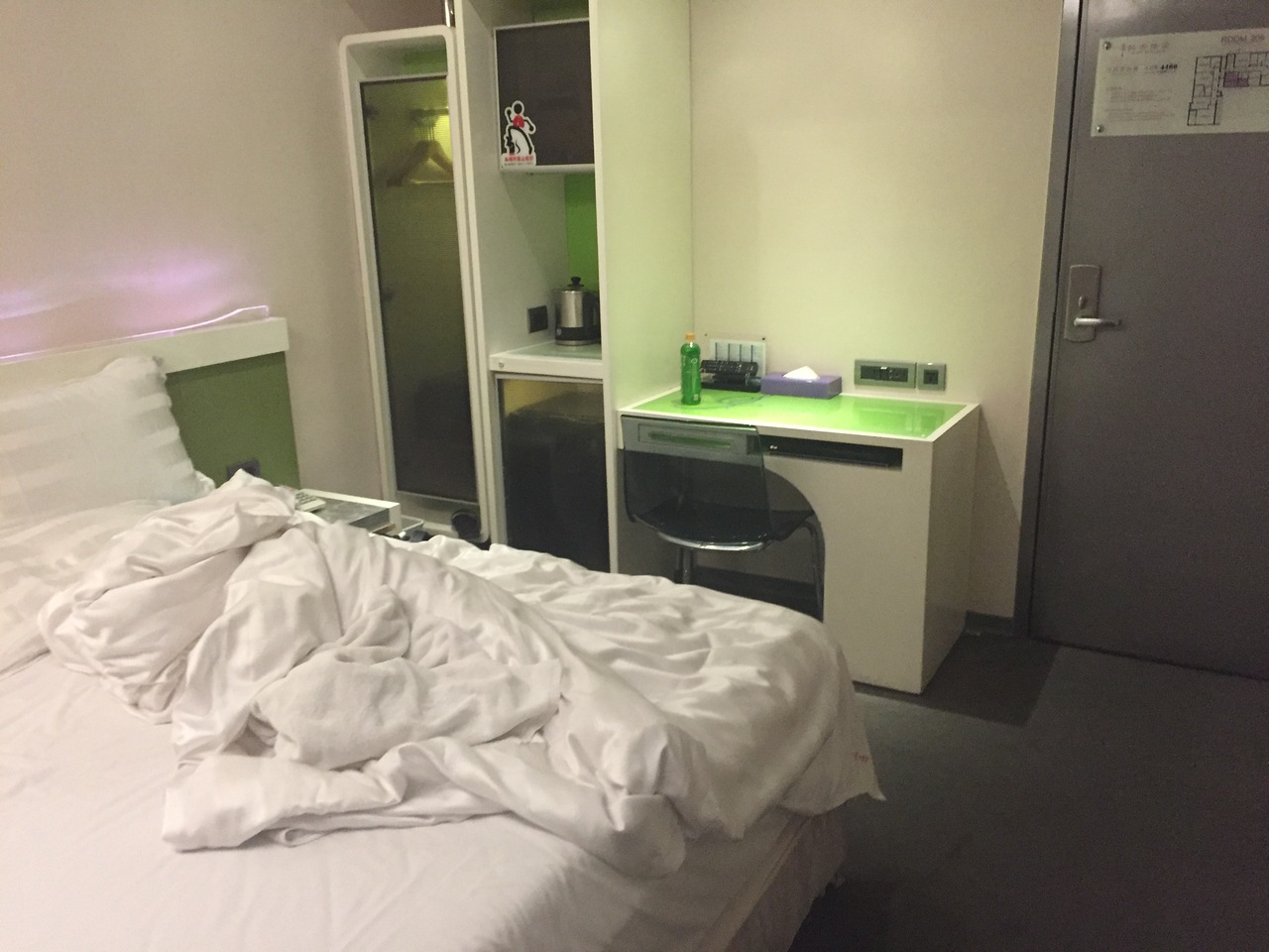 一泊5000円強のビジネスホテルです。中正紀念堂駅の2番出口から徒歩6分程度、大通りから右に少しはいります。部屋はそこそこ広く、男性用アメニティは全てあり、電源も豊富、水2本サービス、お風呂はシャワーですが、全く不自由しませんでした。窓は小さく隣の建物の壁がすぐなので、それが嫌な人以外にオススメです。周辺には美味しい飲食店、セブンイレブンもあり、台北駅近くでなくても良いなと思いました。口コミで高得点なのもわかります。