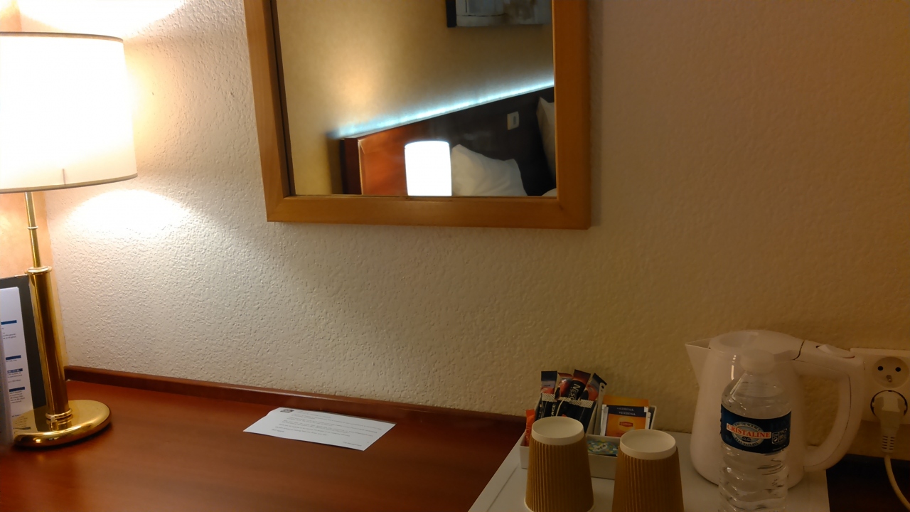 ツアー2日目に1泊しました。バスタブがないシャワーのみの部屋です。トイレは別でしたが、手洗い場がシャワー室にしかありませんでした。電気ポット、アメニティーなどはありました。ツインの部屋でした。ホテル前は道路ですが、静かでした。