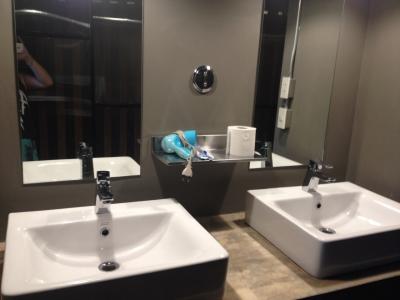 鍵つきロッカーも十分な広さがあり、シャワーも広々、ドライヤーも洗面台にそなえつえられていました。