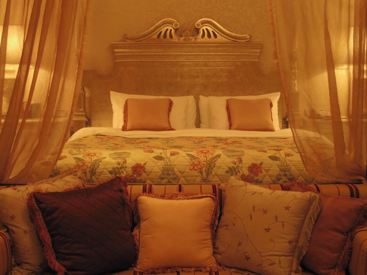 天蓋付きのベッドやアンティークな調度品が気分を盛り上げてくれて、滞在が一層楽しくなると思います。