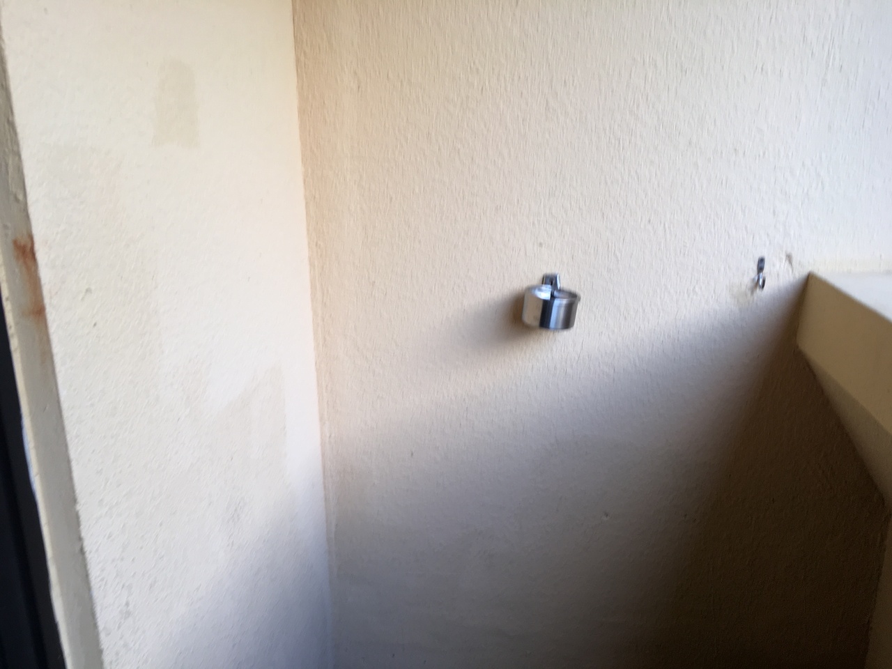 ロープがあれば干せそう。でも位置的に室外機の風で乾く感じ。タバコ、吸えます!