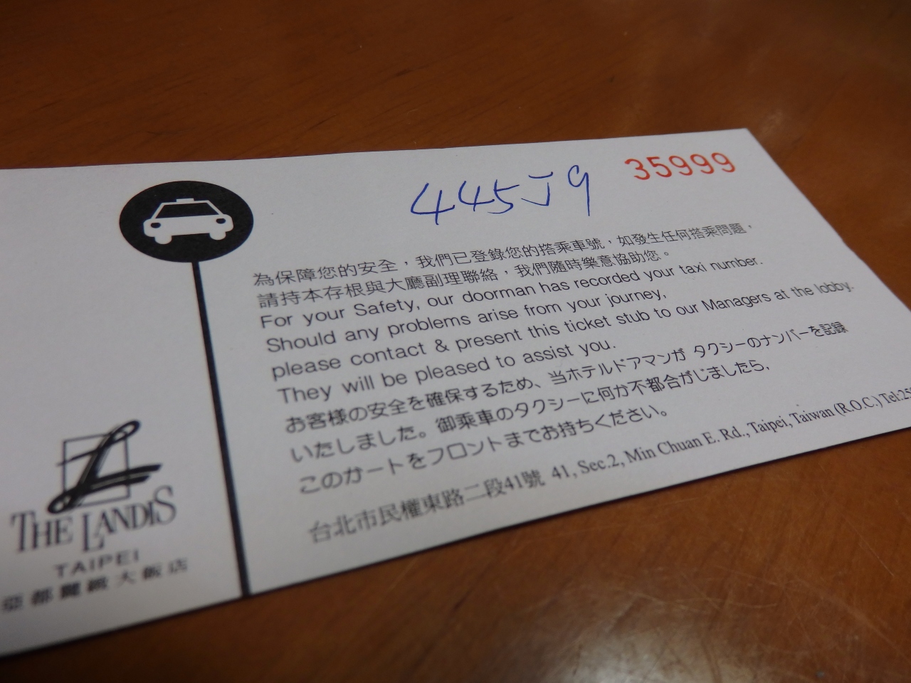 またタクシーの番号を控えたカードをくれて、とても安心できました。