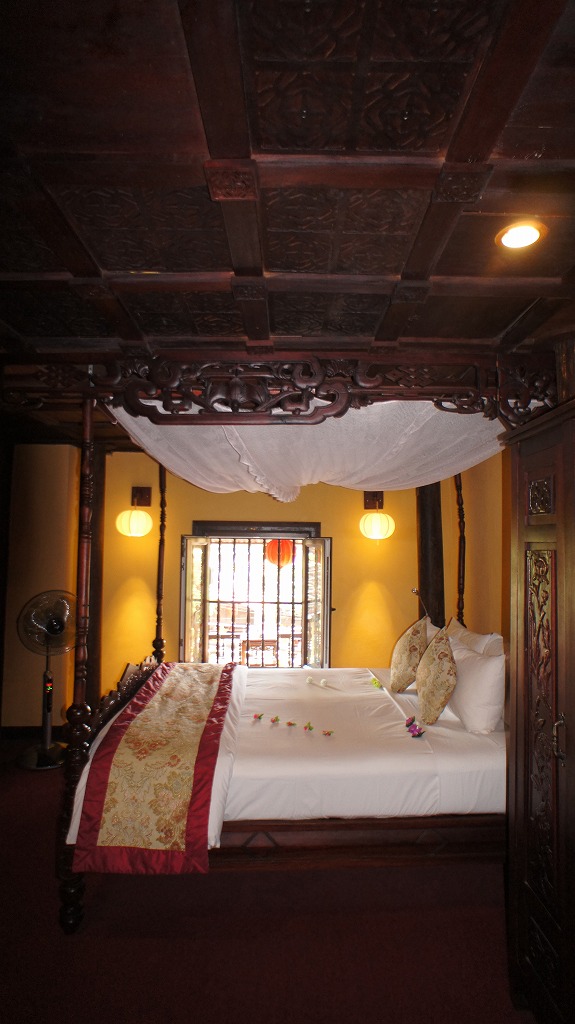 14年前に初めてホイアンを旅した時に泊まりました。その時は208号室のマイケル・ケインルームでした。邦題:愛の落日というベトナム戦争前のサイゴンを舞台にした映画ですが、ロケの多くはホイアンを使っているのが分かります。日本橋が映ったりしますから。今回は206号室なのでデラックススイートの2部屋ともに泊まったことになります。チェクインの時にフロントで「14年ぶりに来たんだ。」と伝えるとスタッフの人が「私は1998年から働いているからその時にいました。」といいます。その当時フロントには25歳のティン君という男性と白いアオザイを着た女性のスタッフだけでした。話をしているとその男性が当時よく話をした本人だと分かりました。それだけで懐かしくなり、このホテルを選んでよかったと思いました。ホイアンには1週間の滞在でしたが、やはり古い建物なので快適さは求められません。前半の3日だけの滞在にしましたが、それは正解でした。それでもこの6室だけのホテルのスタッフのホスピタリティと雰囲気、そして姉妹ホテルを含んだ数々の宿泊者の特典はすばらしいです。20分のフットマッサージ、ホテルスタッフとの夕食、リバーサイドホテルのガーデンに設けられた屋台での食事とサンセットクルーズなど。旧市街の観光についていえば、ホテルが至近距離なので、休憩に戻ったり便利です。ただ、車が入れない場所なのでホイアンからの移動やツアーなどの送迎は多少不便です。それと部屋の鍵を抜くとすべての電源が落ちるので、冷蔵庫やエアコンが停まるので不便も感じます。ただ、ホイアンの歴史を感じるにはこのホテルしか考えられないので貴重な滞在になると思います。
