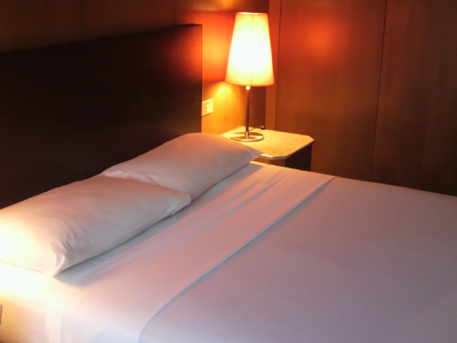 客室のベッドの様子です。照明と相まって落ち着いた感じがします